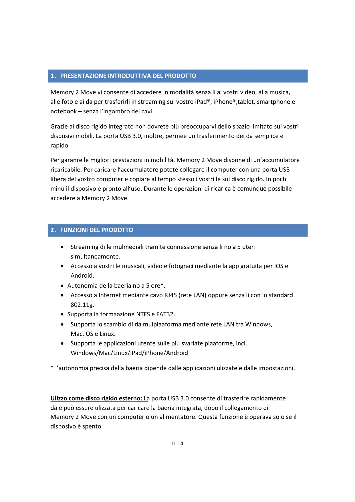 Uso senza fili: collegate Memory 2 Move con il vostro router senza fili, come descritto nelle seguenti istruzioni d’uso, per accedere a Internet in modalità Wi-Fi.IT - 6