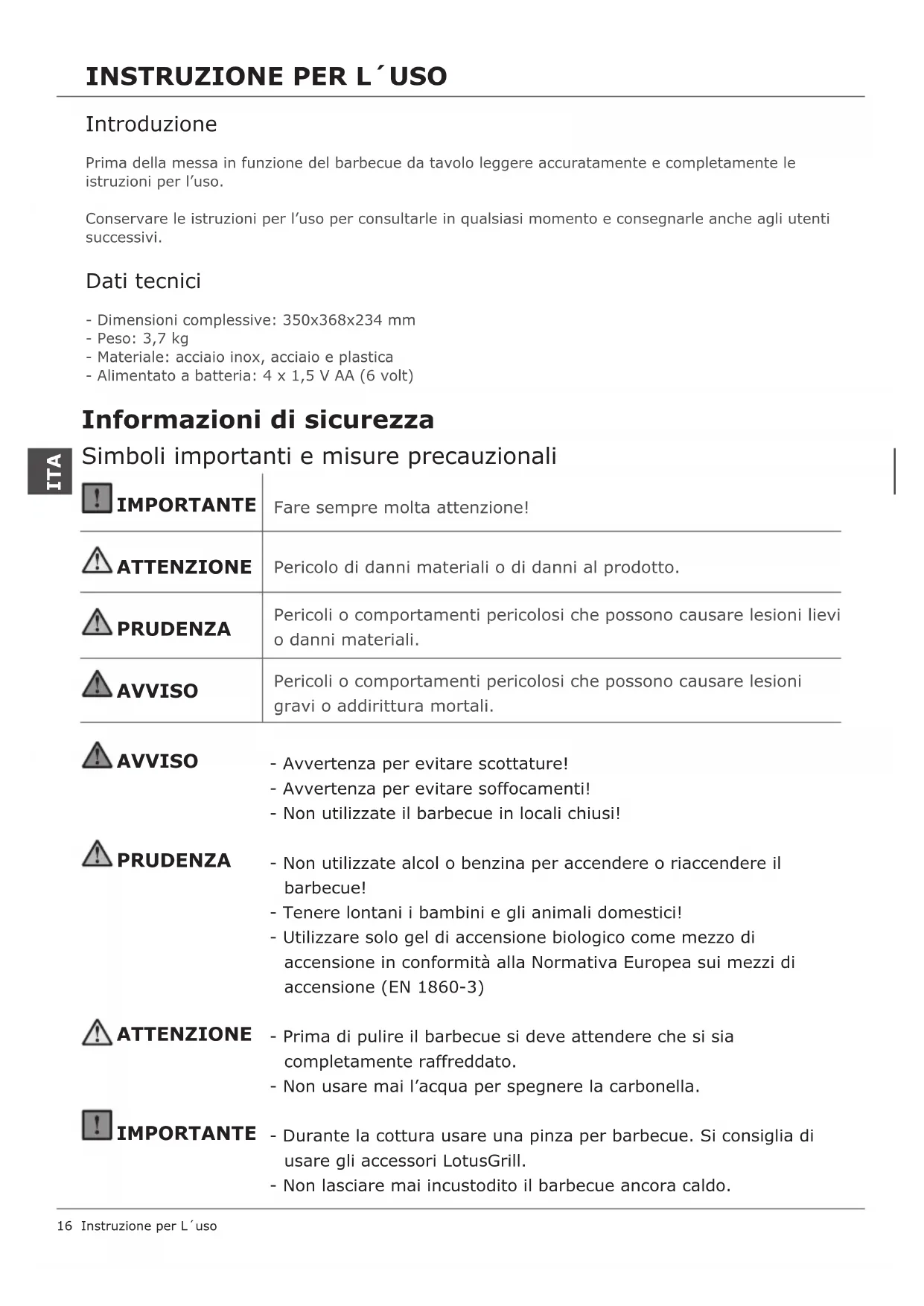 Prima della messa in funzione del barbecue da ravolo leggere accuratamente e completeness le istruzioni per l'uso.