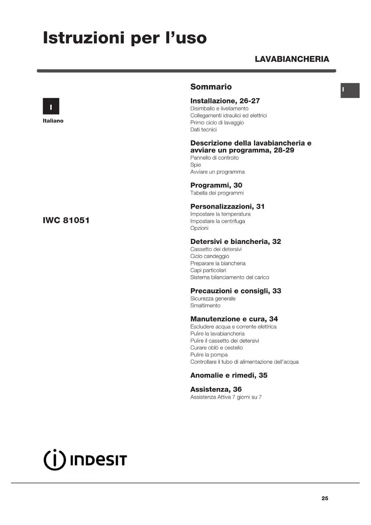 IWC 81051 C ECO(EU) - Lavatrice INDESIT - Manuale utente e istruzioni gratuiti