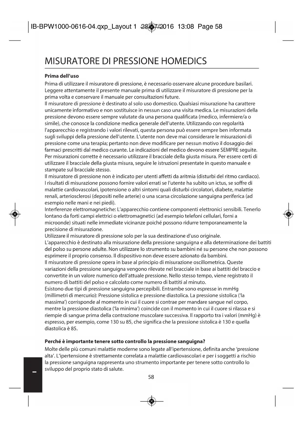 MISURATORE DI PRESSIONE HOMEDICS Prima dell’uso