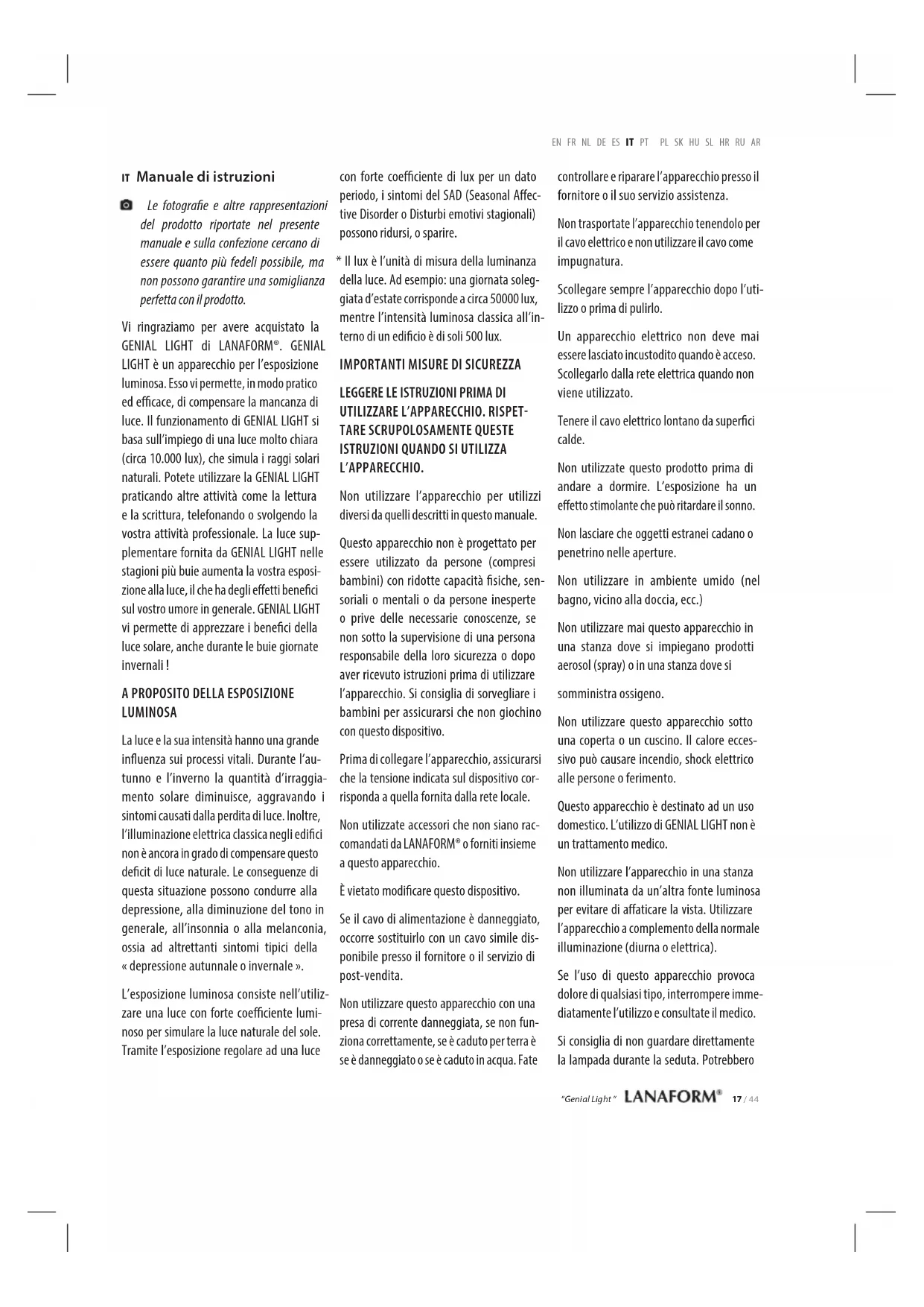 Genial Light - Fototerapia LANAFORM - Manuale utente e istruzioni gratuiti