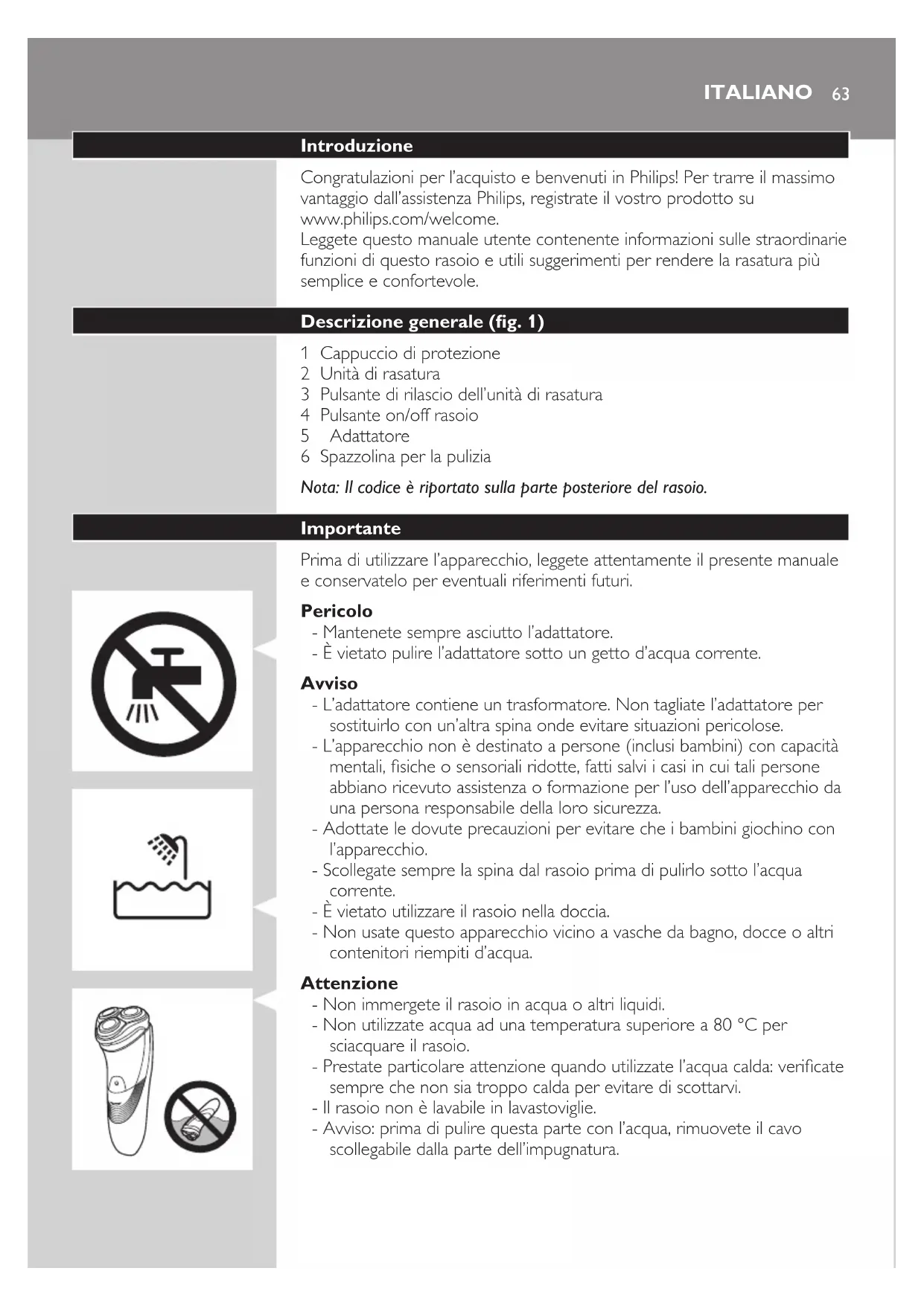 - Scollegate sempre la spina dal rasoio prima di pulirlo sotto l’acqua