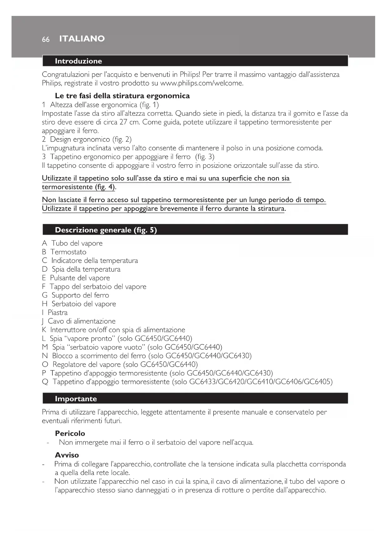 MANUALE UTENTE 6400 series GC6410 PHILIPS
