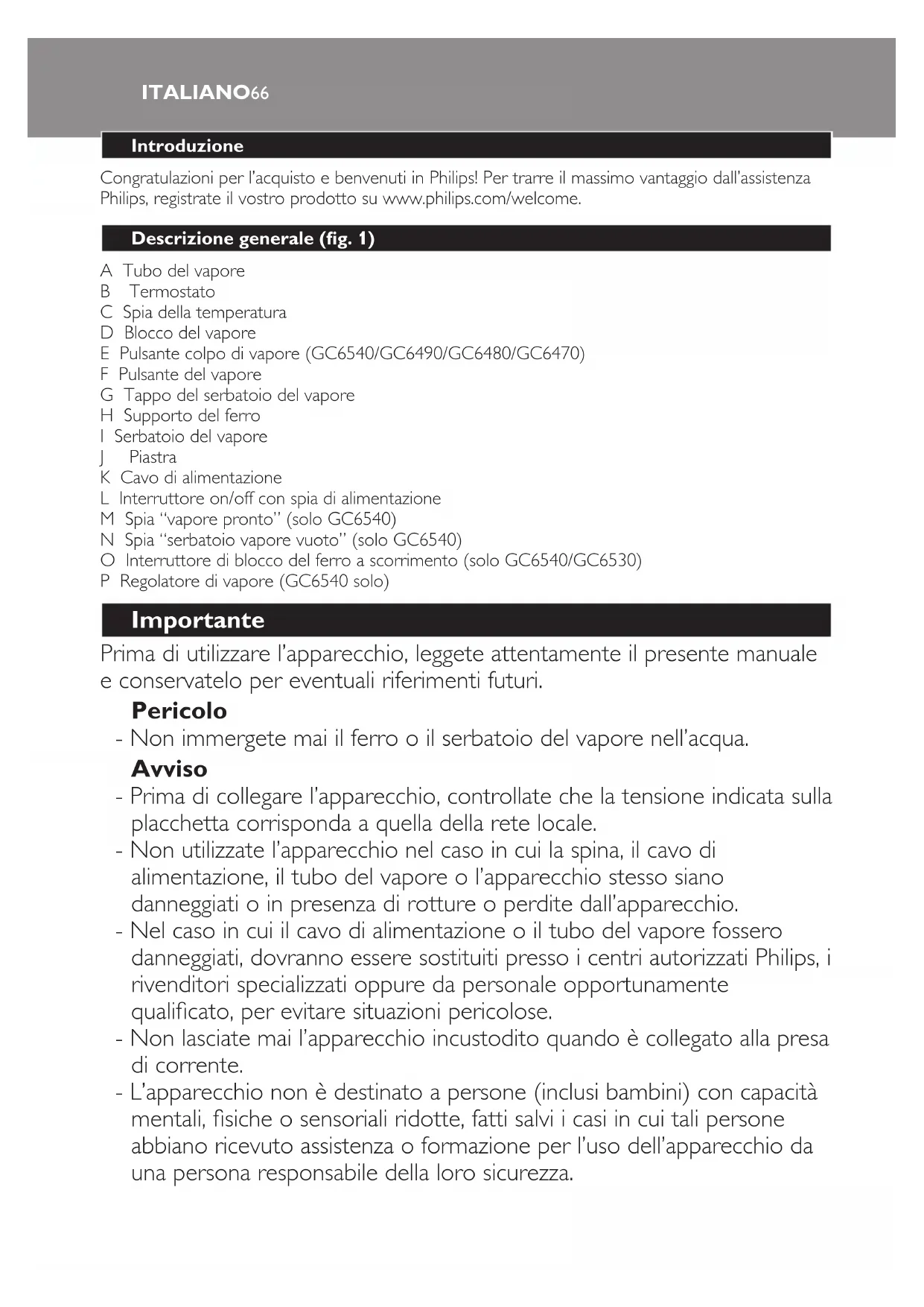 CompactCare GC6470 - Ferro da stiro PHILIPS - Manuale utente e istruzioni gratuiti