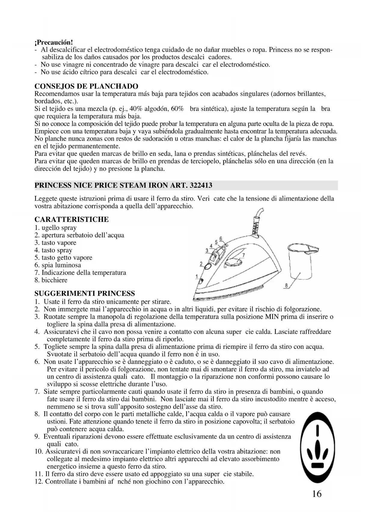 - Fate attenzione quando decalcificate il ferro da stiro, per evitare di danneggiare gli indumenti. Princess