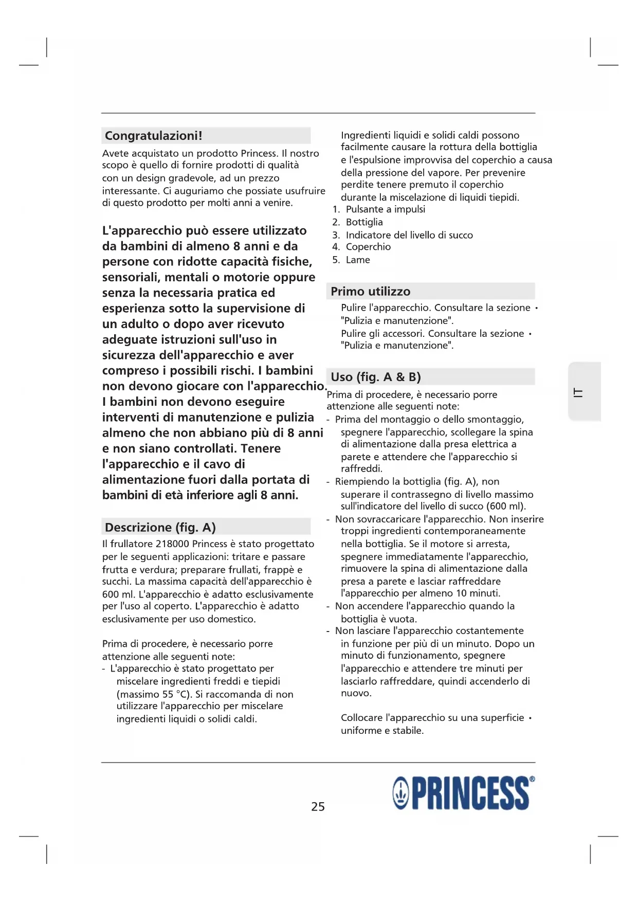 MANUALE UTENTE 218000 PRINCESS