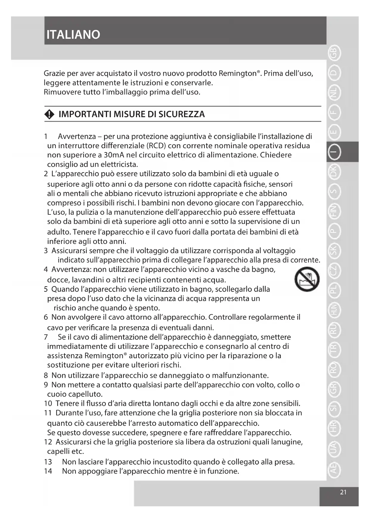 D5220 - Asciugacapelli REMINGTON - Manuale utente e istruzioni gratuiti