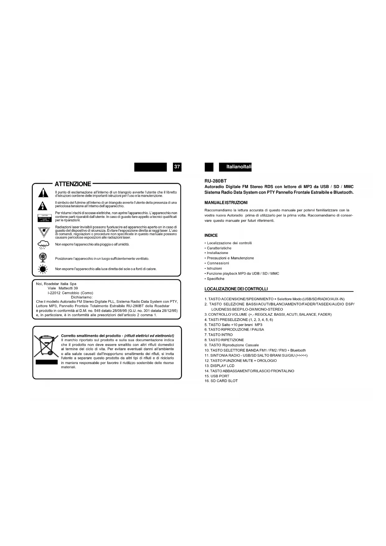 MANUALE UTENTE RU280BT ROADSTAR