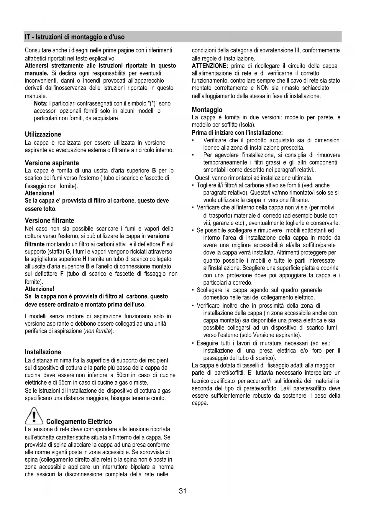 provvista di spina allacciare la cappa ad una presa conforme