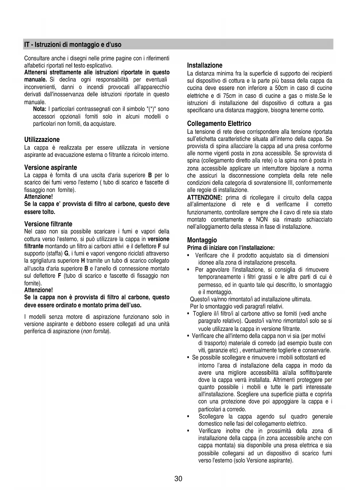 l'eventuale telaio fornito con la cappa non va perciò utilizzato.