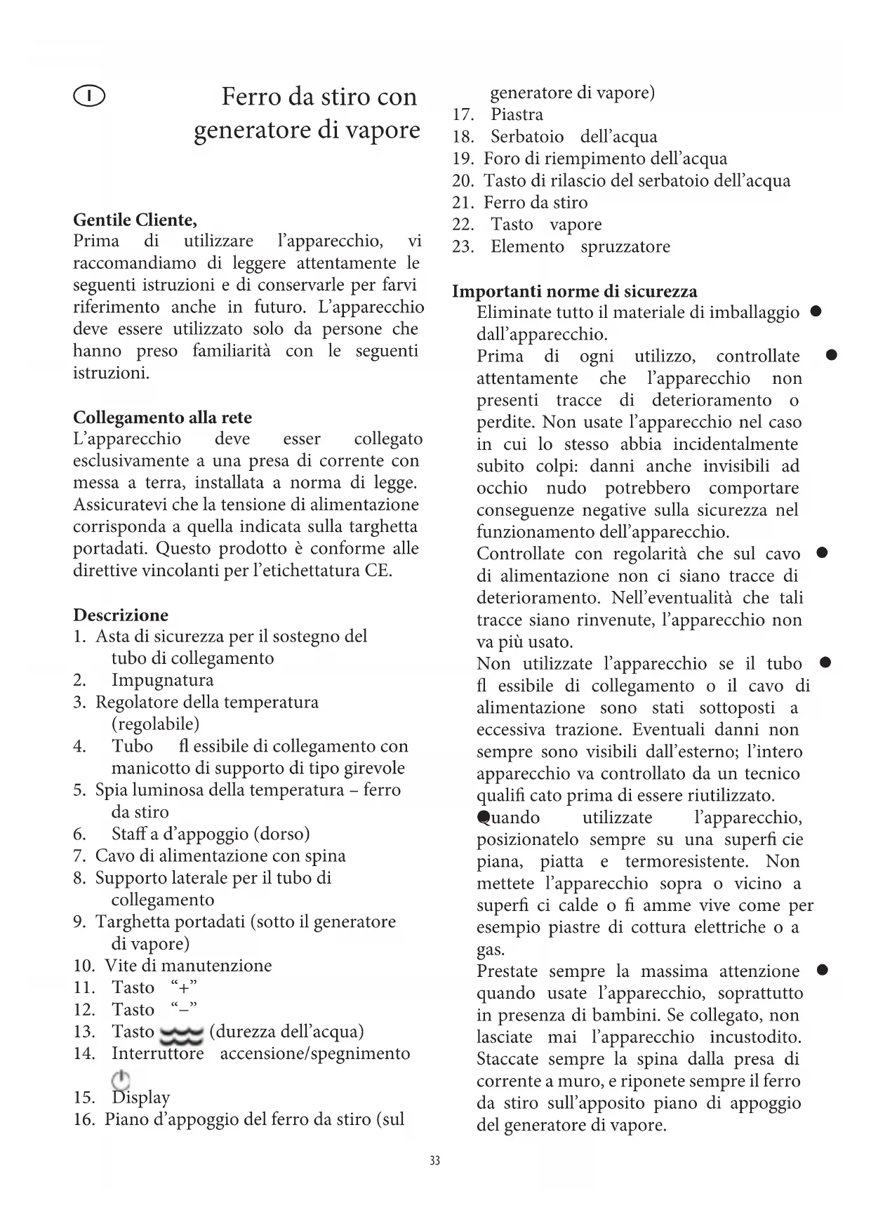 Prima di utilizzare l’apparecchio, vi