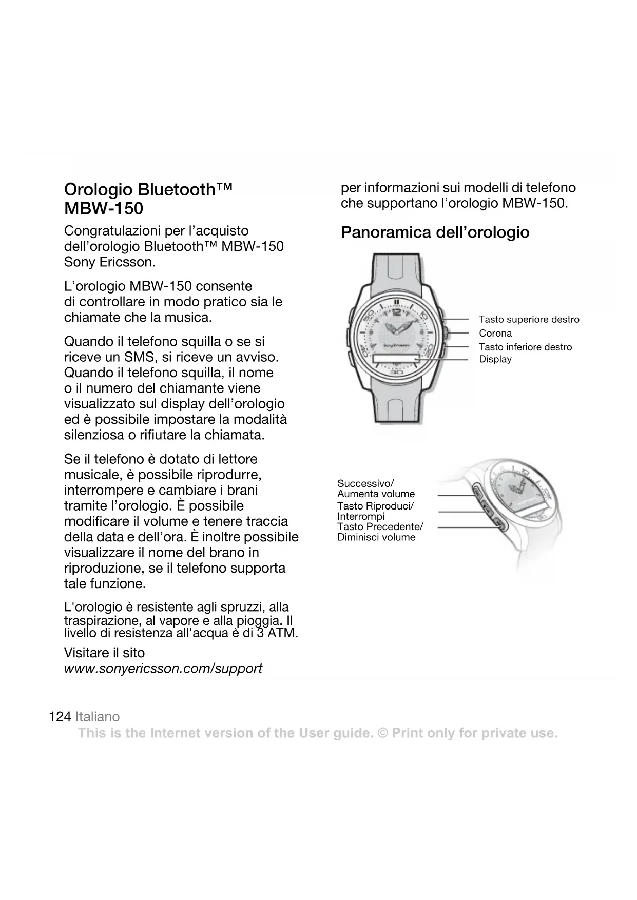 Congratulations per l'acquisto dell'orologio Bluetooth™ MBW-150 Sony Ericsson.