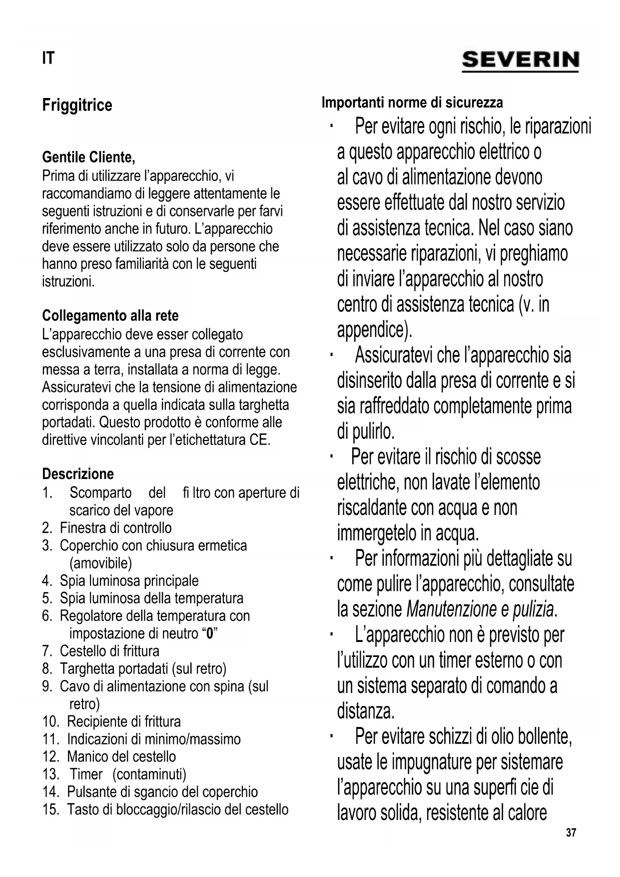 MANUALE UTENTE FR 2433 SEVERIN