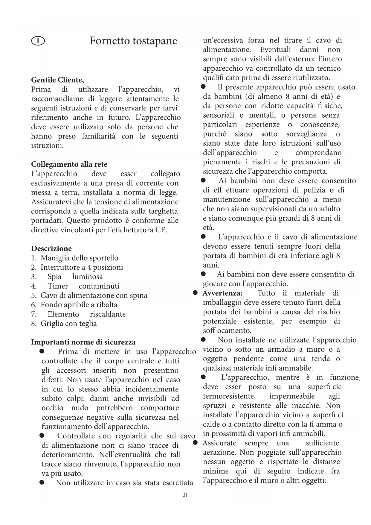 dell’apparecchio e comprendano