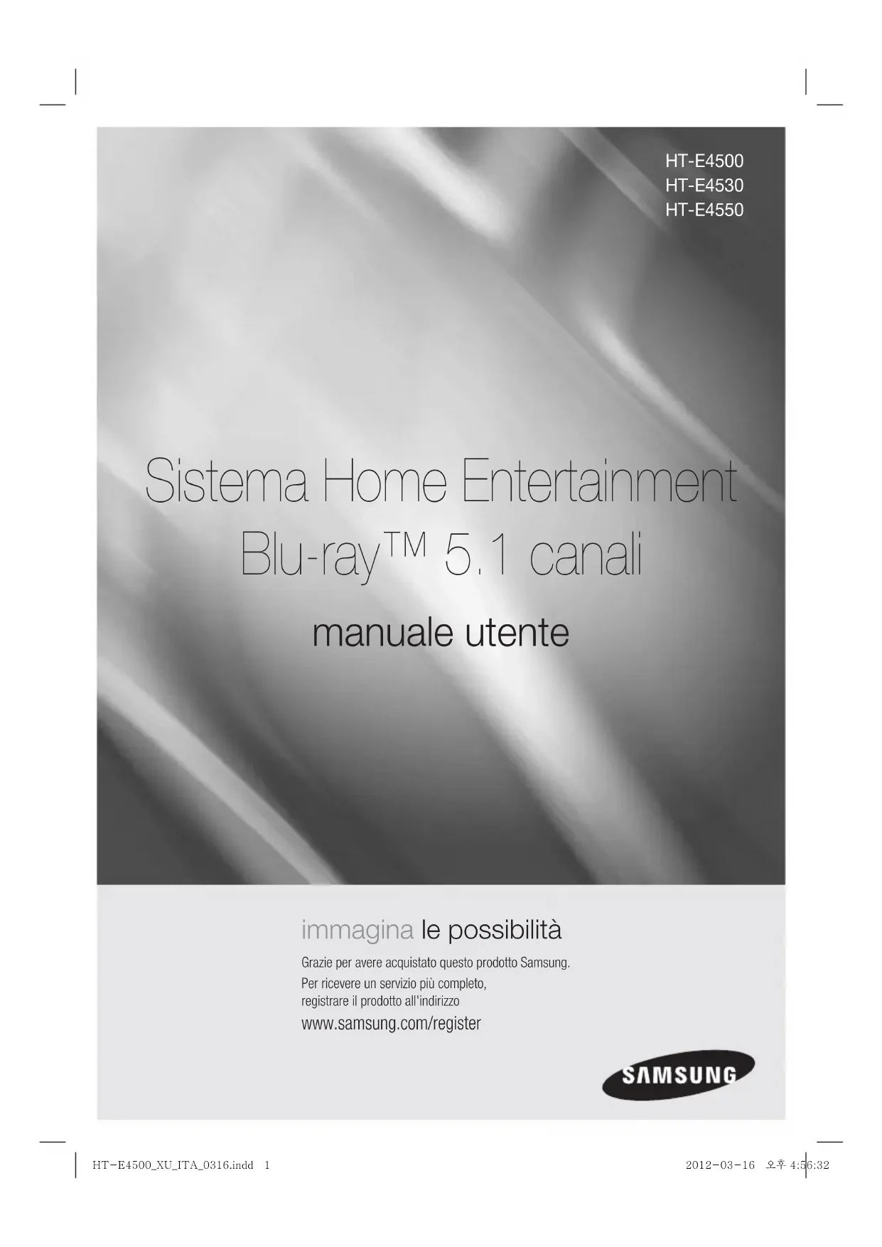 HT-E4500_XU_GER-0316.indd 64HT-E4500_XU_GER-0316.indd 64 2012-03-16 오후 4:54:222012-03-16 오후 4:54:22immagina le possibilità Grazie per avere acquistato questo prodotto Samsung.Per ricevere un servizio più completo, registrare il prodotto all'indirizzo www.samsung.com/register