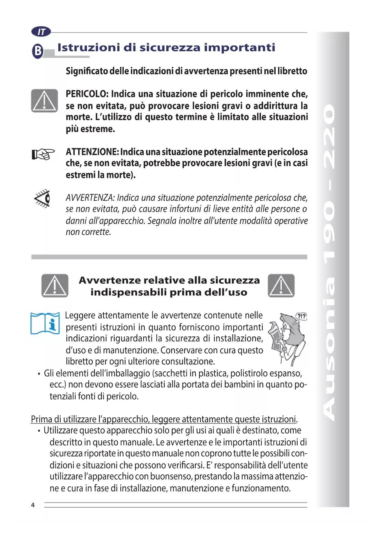 Trova gratuitamente il manuale del dispositivo Ausonia 190 RGV in formato PDF.
