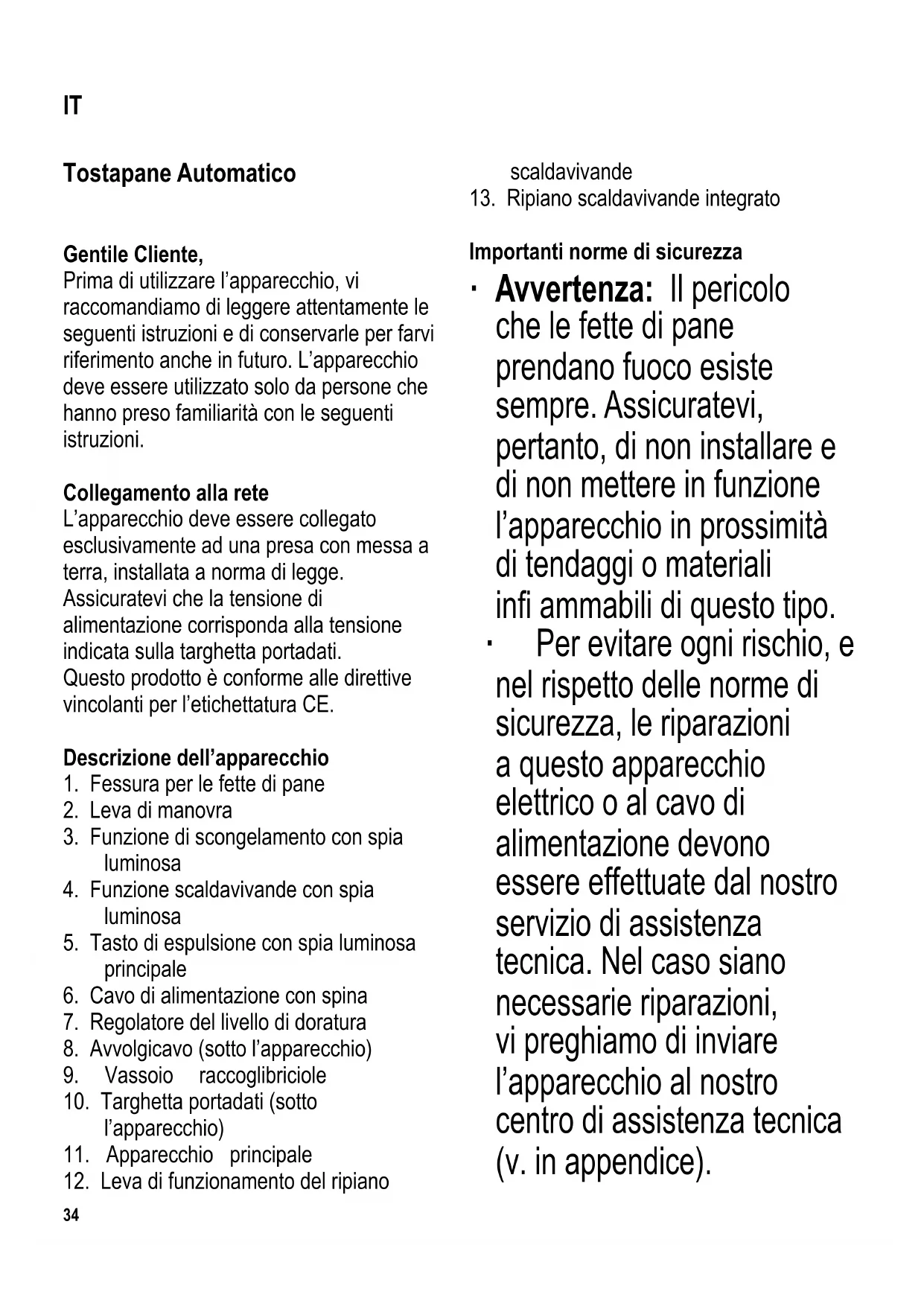 Importanti norme di sicurezza