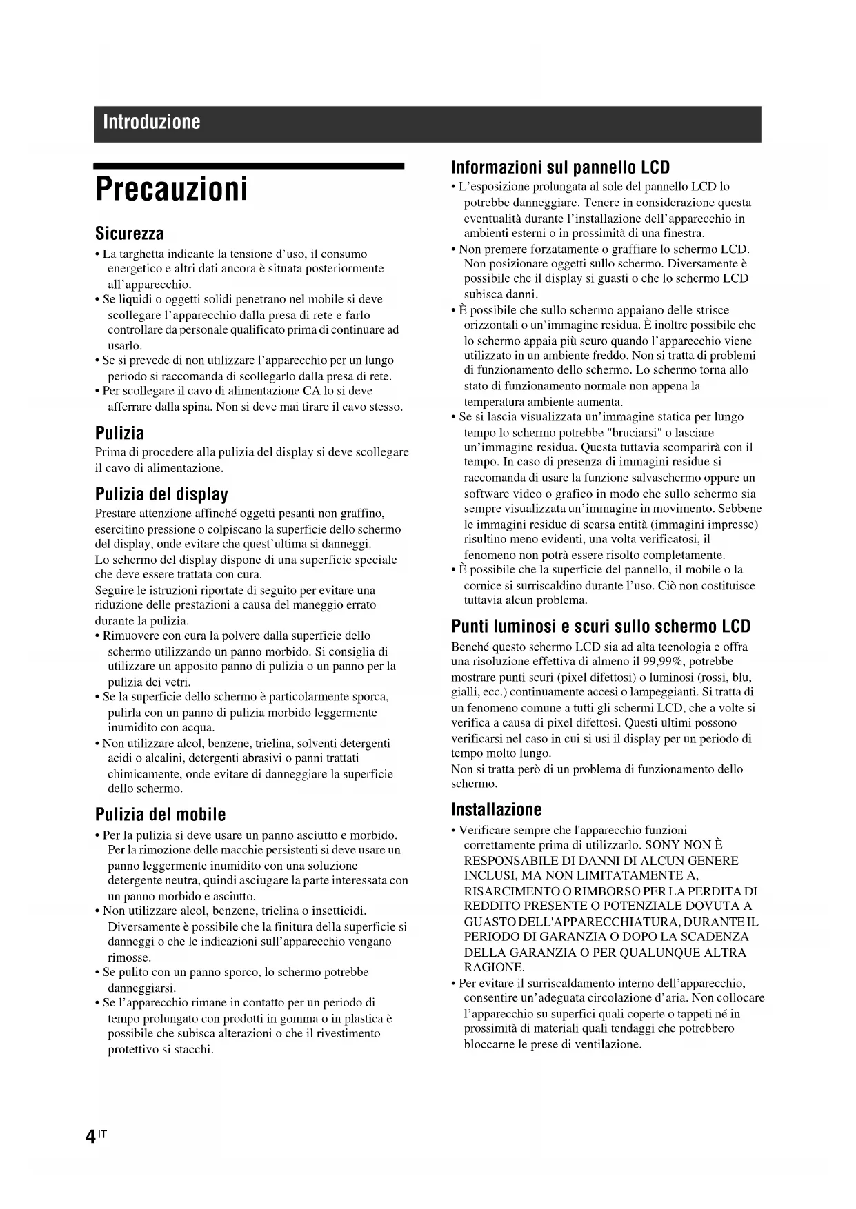 MANUALE UTENTE FWD32B1TOUCH SONY