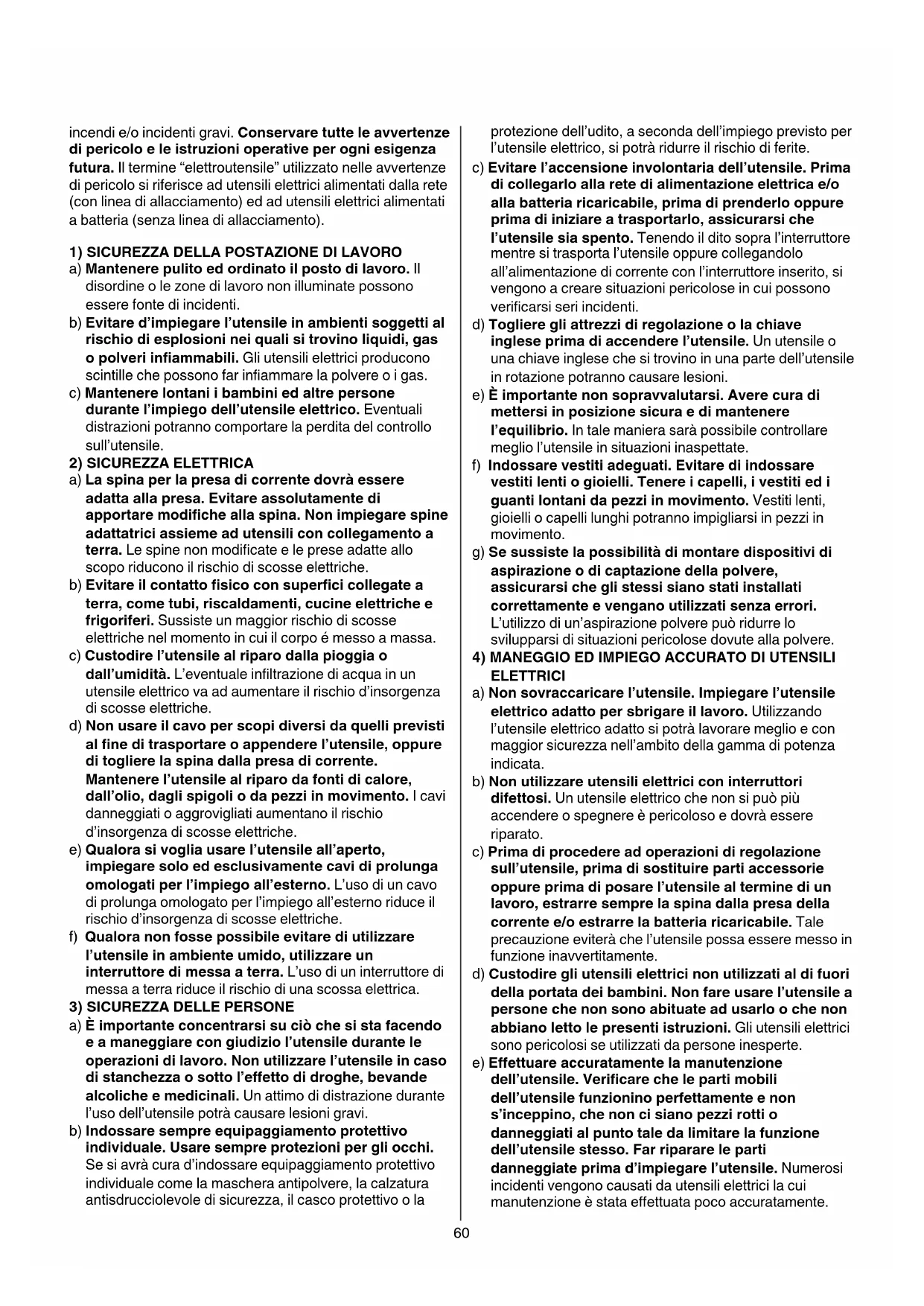 SICUREZZA ISTRUZIONI GENERALI DI SICUREZZA ATTENZIONE! Leggere tutte le avvertenze di
