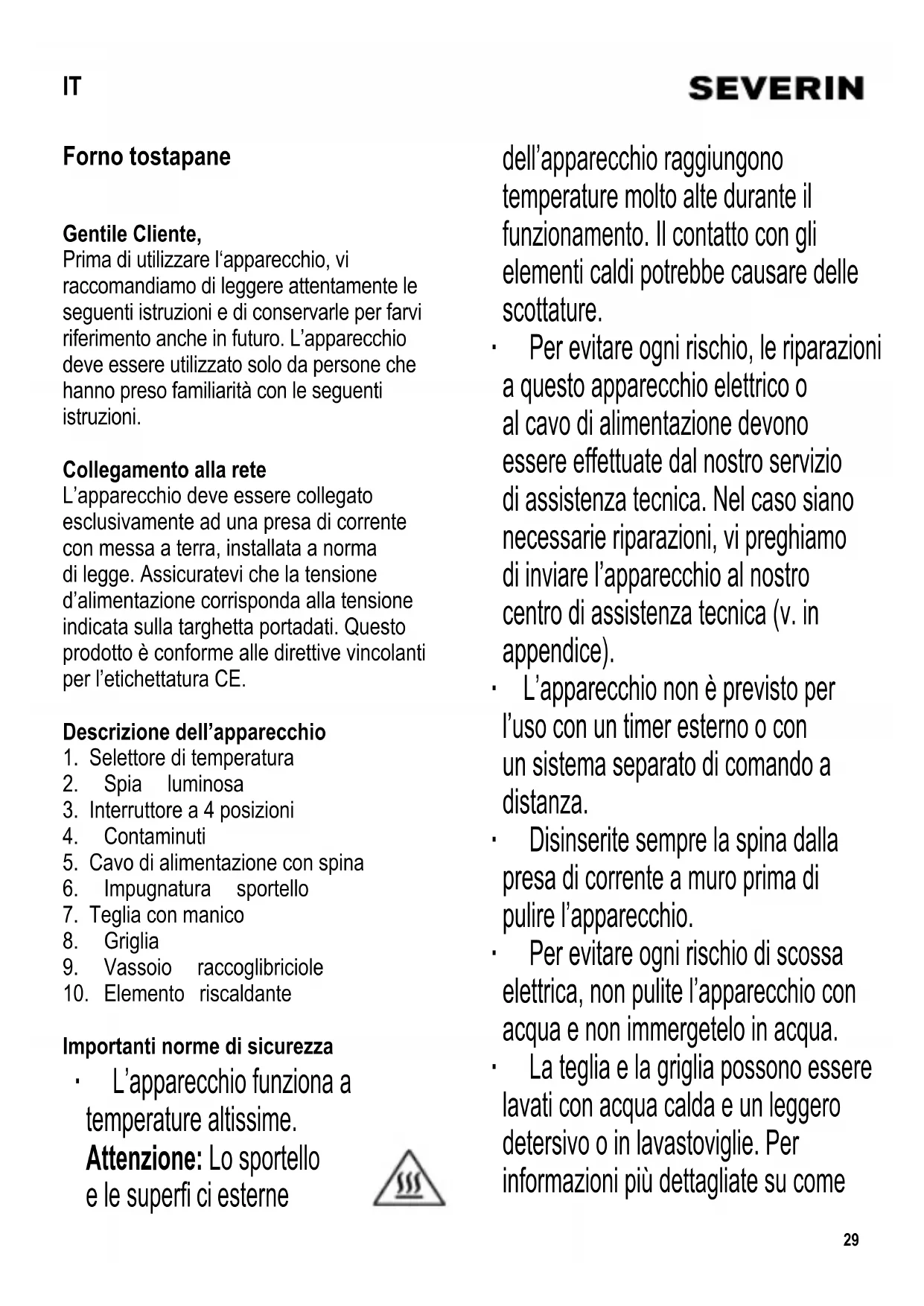 MANUALE UTENTE TO2053 SEVERIN