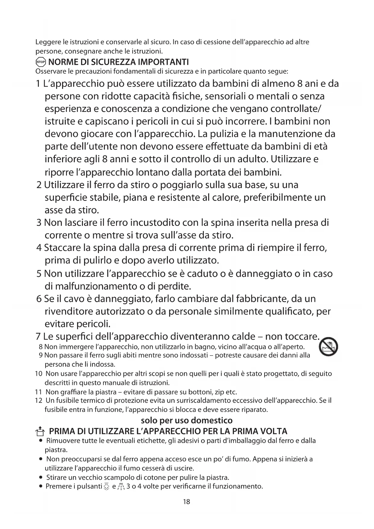 1 L'apparecchio può essere utilizzato da bambini di almeno 8 ani e da persone con ridotte capacità fisiche, sensoriali o mentali o senza esperienza e conoscenza a condizione che vengano controllate/istruite e capiscano i pericoli in cui si può incorrere. I bambini non devono giocare con l'apparecchio. La pulizia e la manutenzione da parte dell'utente non devono essere effettuate da bambini di età inferiore agli 8 anni e sotto il controllo di un adulto. Utilizzare e riporre l'apparecchio lontano dalla portata dei bambini.