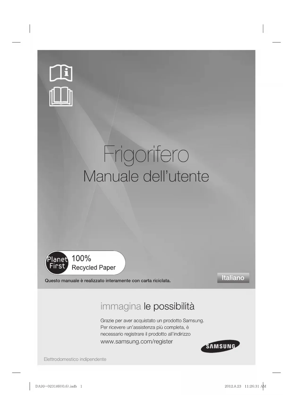 Italiano Elettrodomestico indipendenteQuesto manuale è realizzato interamente con carta riciclata. DA99-02318H(0.6).indb 1DA99-02318H(0.6).indb 1 2012.8.23 11:26:31 AM2012.8.23 11:26:31 AM2_ informazioni