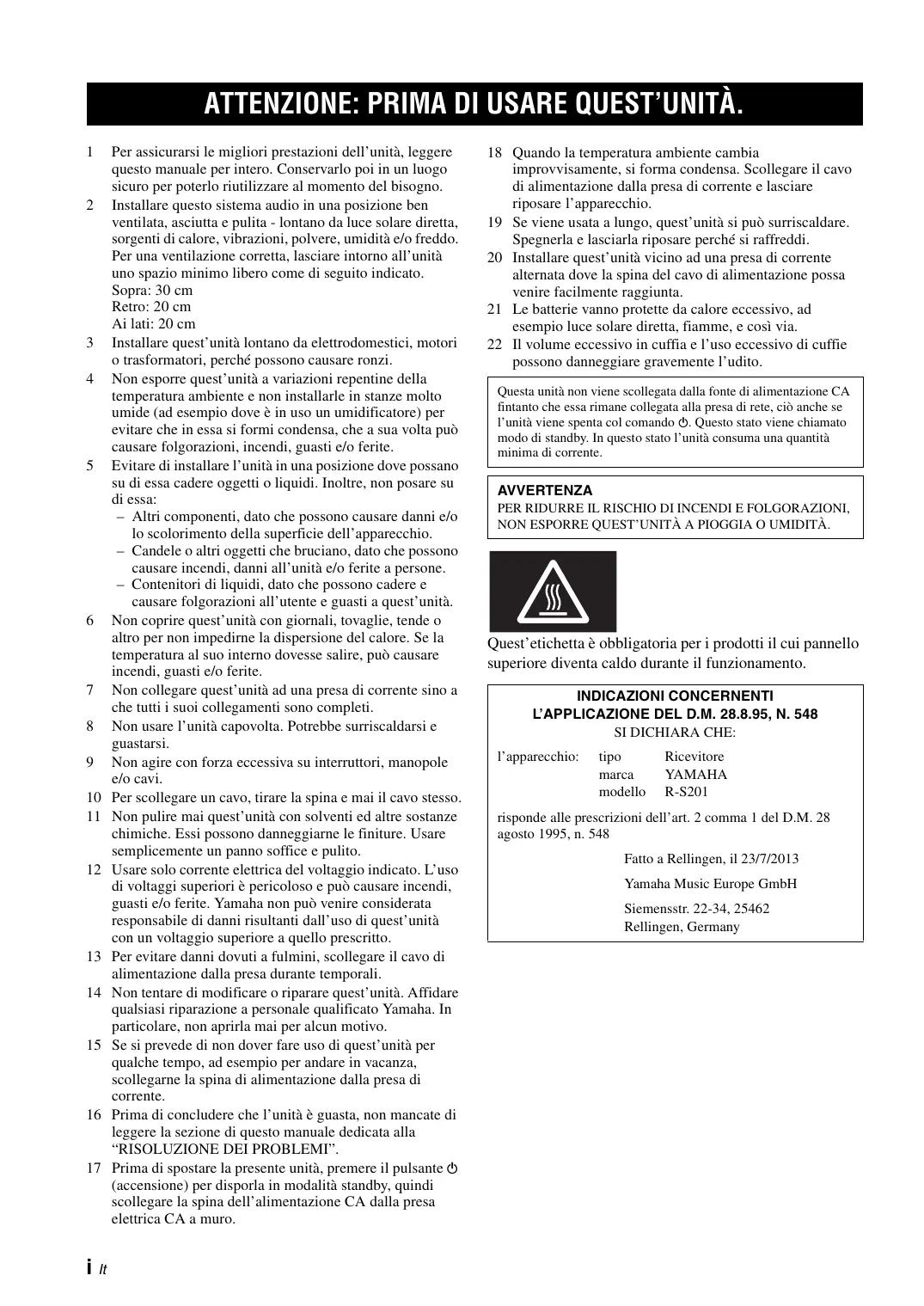 Scarica le istruzioni per il tuo Amplificatore stereo in formato PDF gratuitamente! Trova il tuo manuale RS201 - YAMAHA e riprendi in mano il tuo dispositivo elettronico. In questa pagina sono pubblicati tutti i documenti necessari per l'utilizzo del tuo dispositivo. RS201 del marchio YAMAHA.