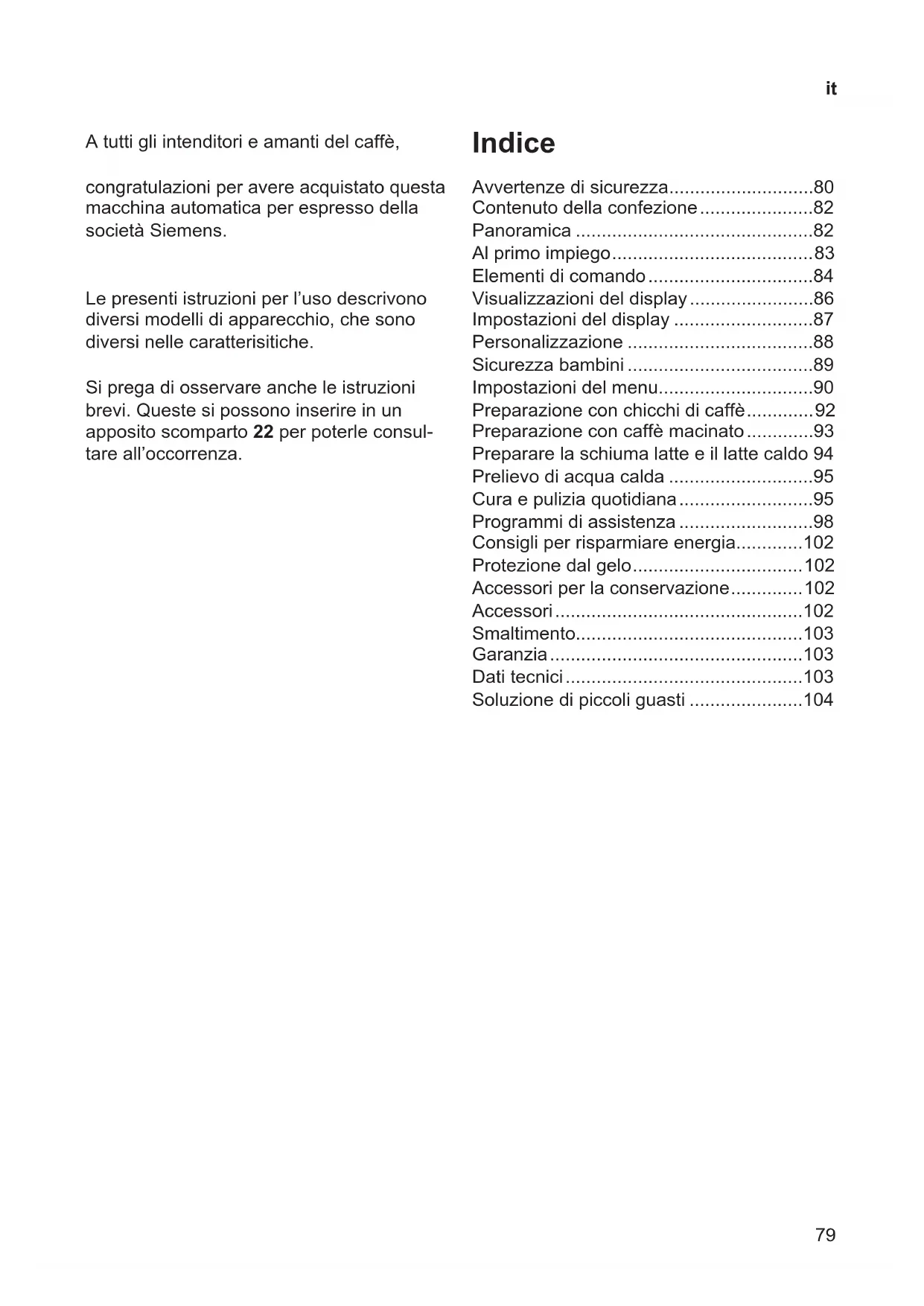 TE803509DE - Macchina da caffè SIEMENS - Manuale utente e istruzioni gratuiti