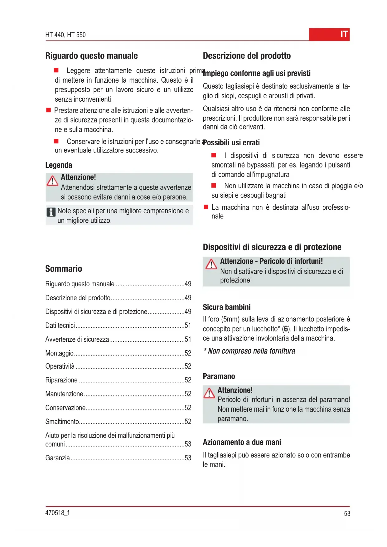 Scarica le istruzioni per il tuo Tagliasiepi in formato PDF gratuitamente! Trova il tuo manuale HT 550 - AL-KO e riprendi in mano il tuo dispositivo elettronico. In questa pagina sono pubblicati tutti i documenti necessari per l'utilizzo del tuo dispositivo. HT 550 del marchio AL-KO.