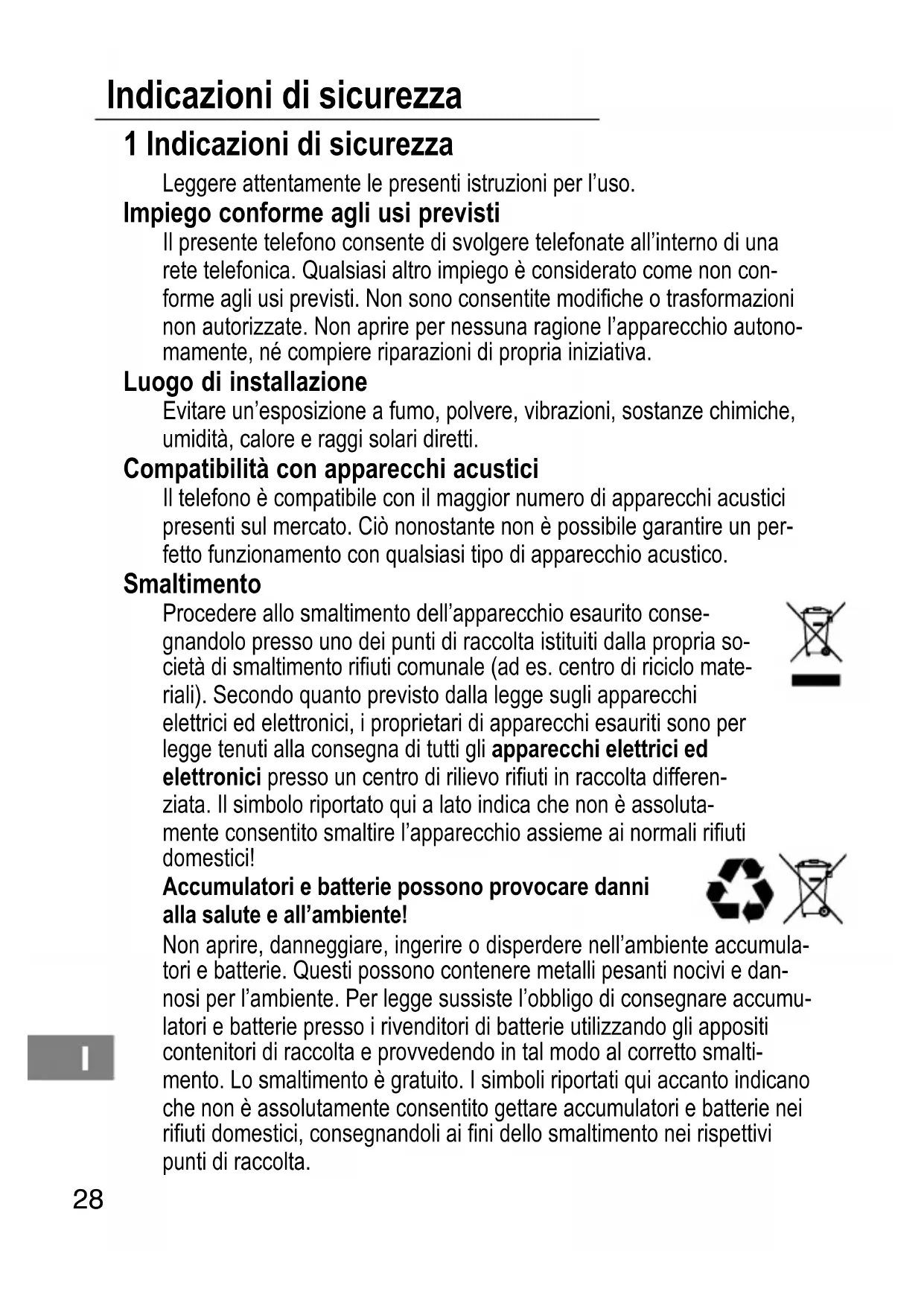 Il presente Telefono consente di svolgere Telefonate all'interno di una rete Telefonica. Qualsiasi altri impiego è considerato come non conforme agli usi previsti. Non sono consentite modifiche o trasformazioni non autorizzate. Non aprire per nessuna ragione l'apparecchio autonomamente, né compiere riparazioni di propria iniziativa.