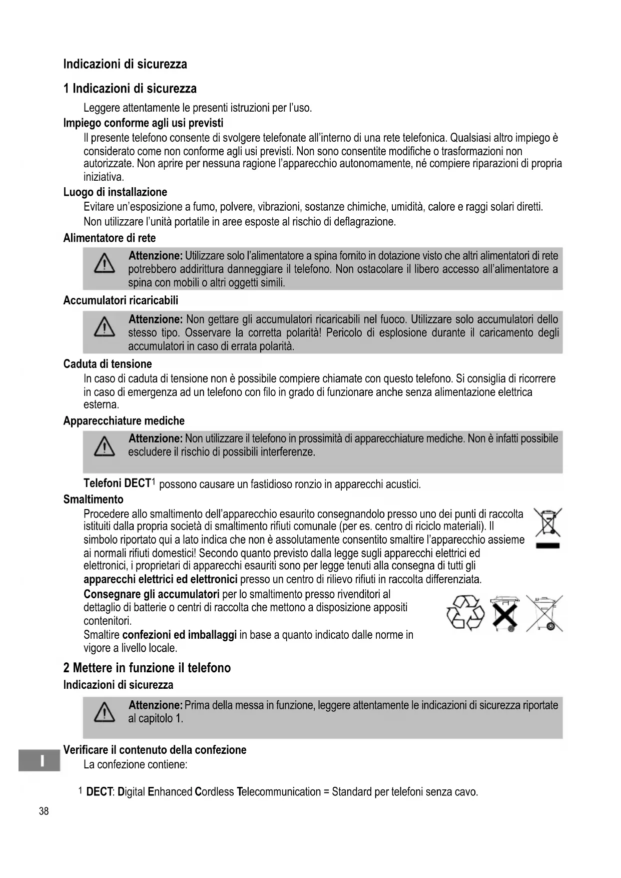 1 DECT: Digital Enhanced Cordless Telecommunication = Standard per telephone Senza cavo.