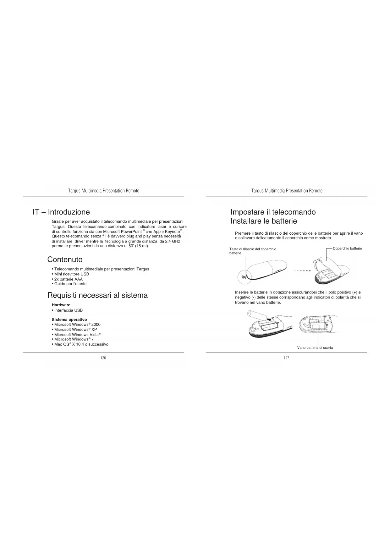 AMP09 - Telecomando TARGUS - Manuale utente e istruzioni gratuiti