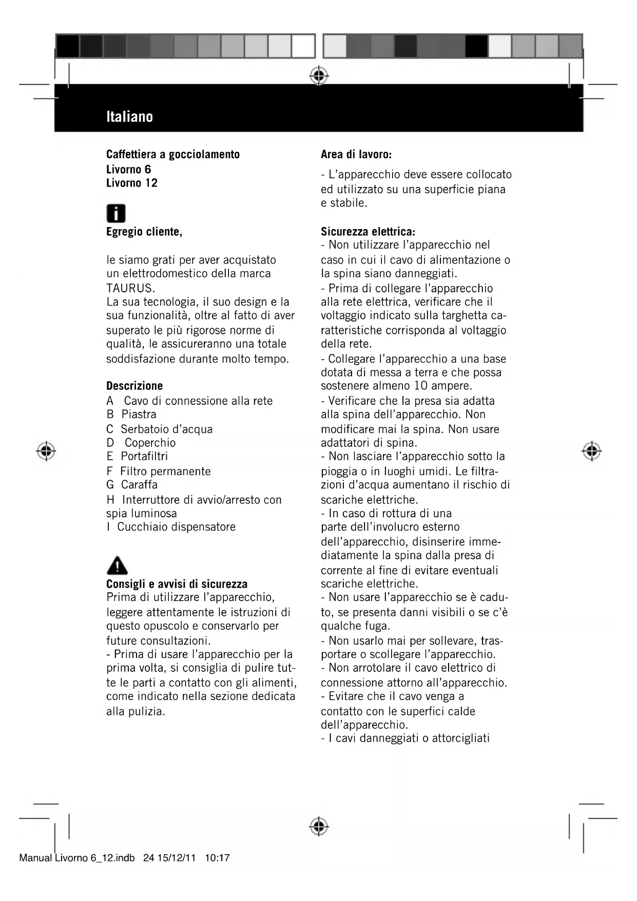 MANUALE UTENTE Livorno 12 TAURUS