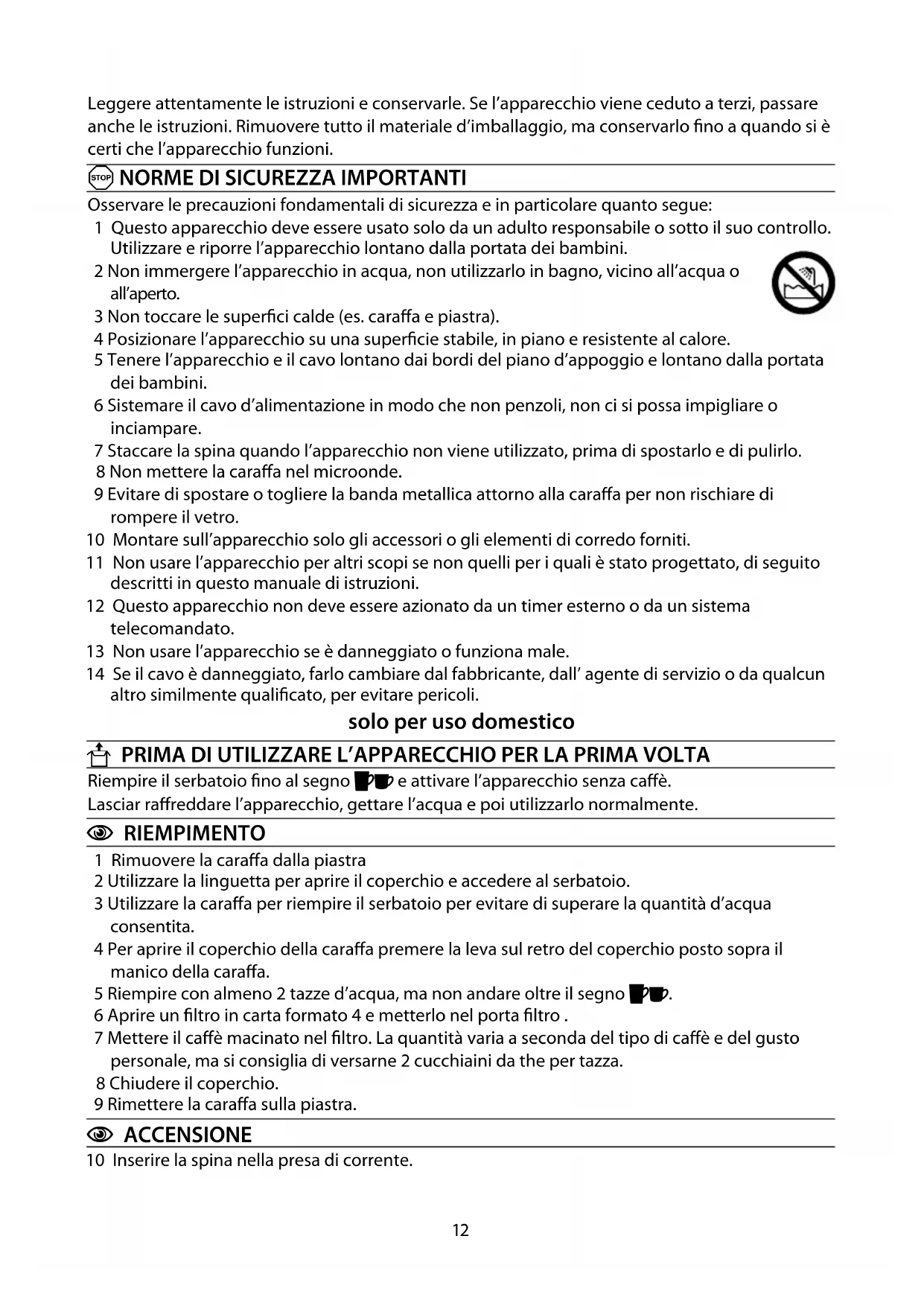 3 Non toccare le superfici calde (es. caraffa e piastra).