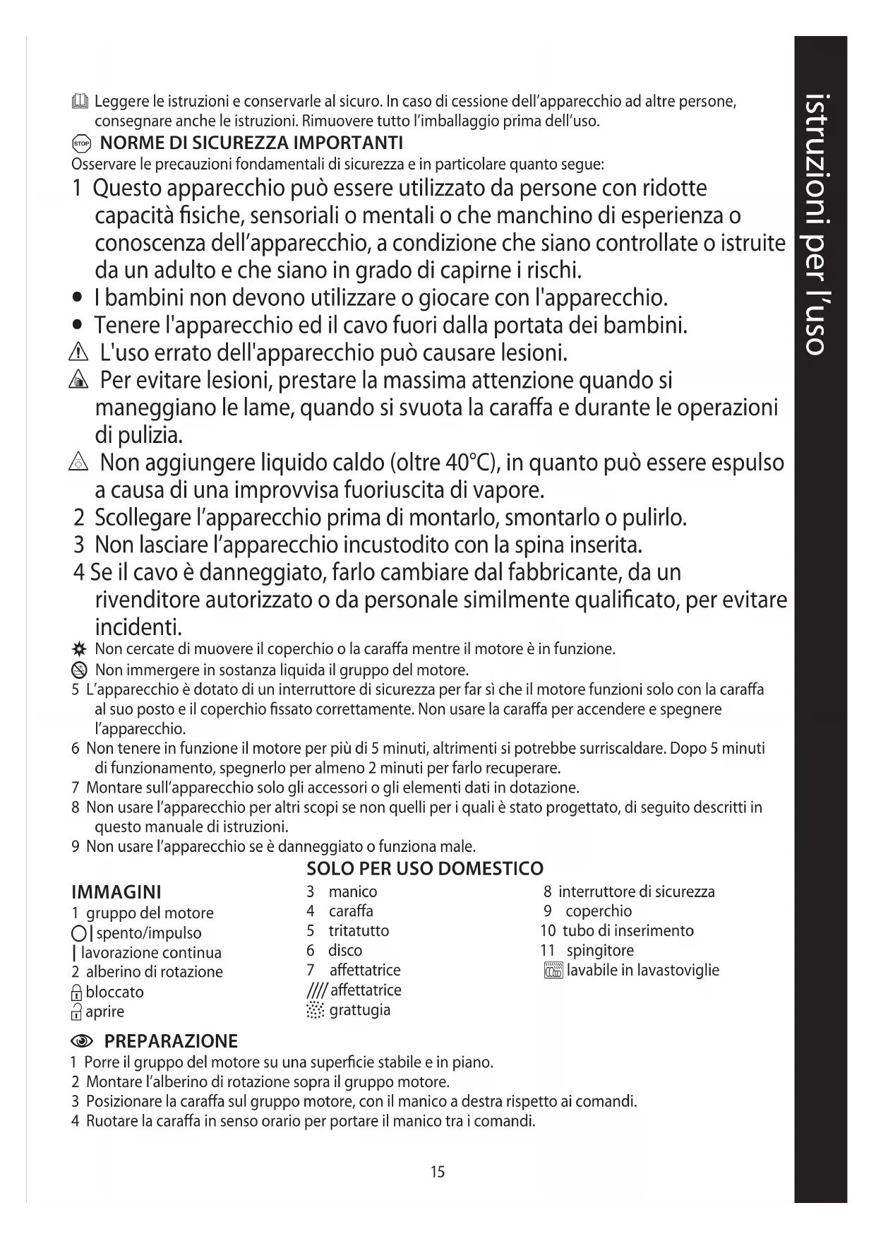 maneggiano le lame, quando si svuota la caraffa e durante le operazioni