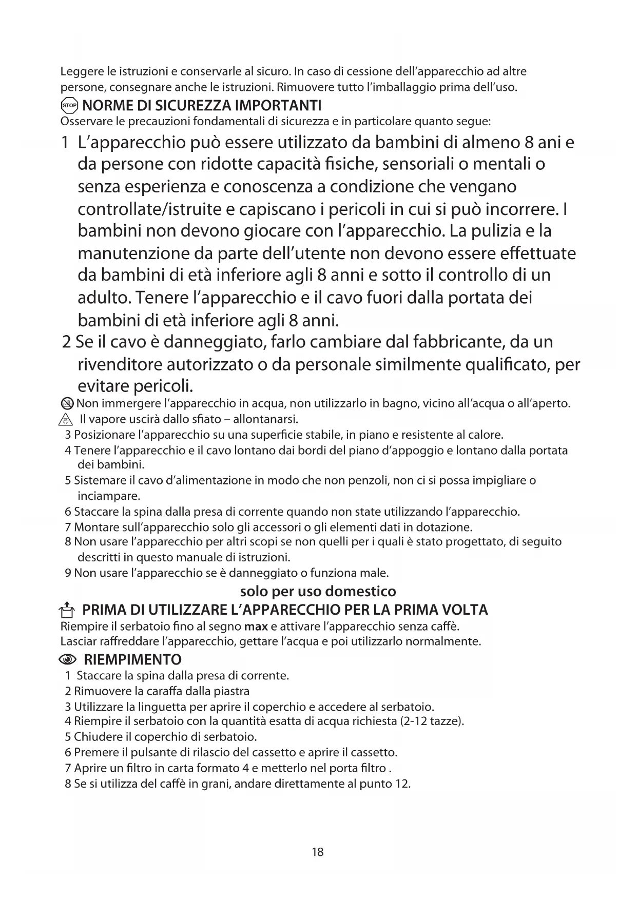 Leggere le istruzioni e conservarle al sicuro. In caso di cessione dell’apparecchio ad altre