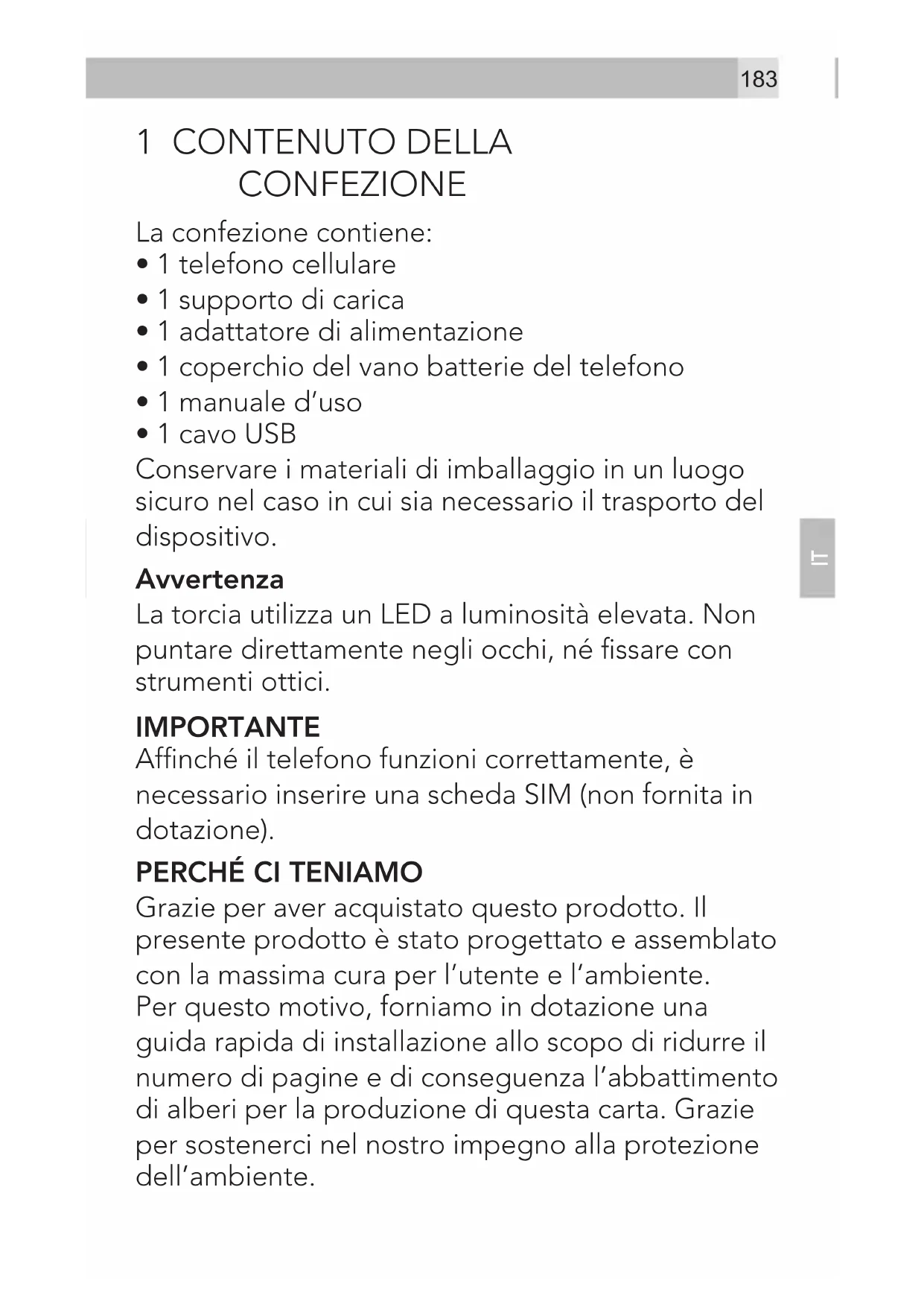 1 CONTENUTO DELLA CONFEZIONE 183