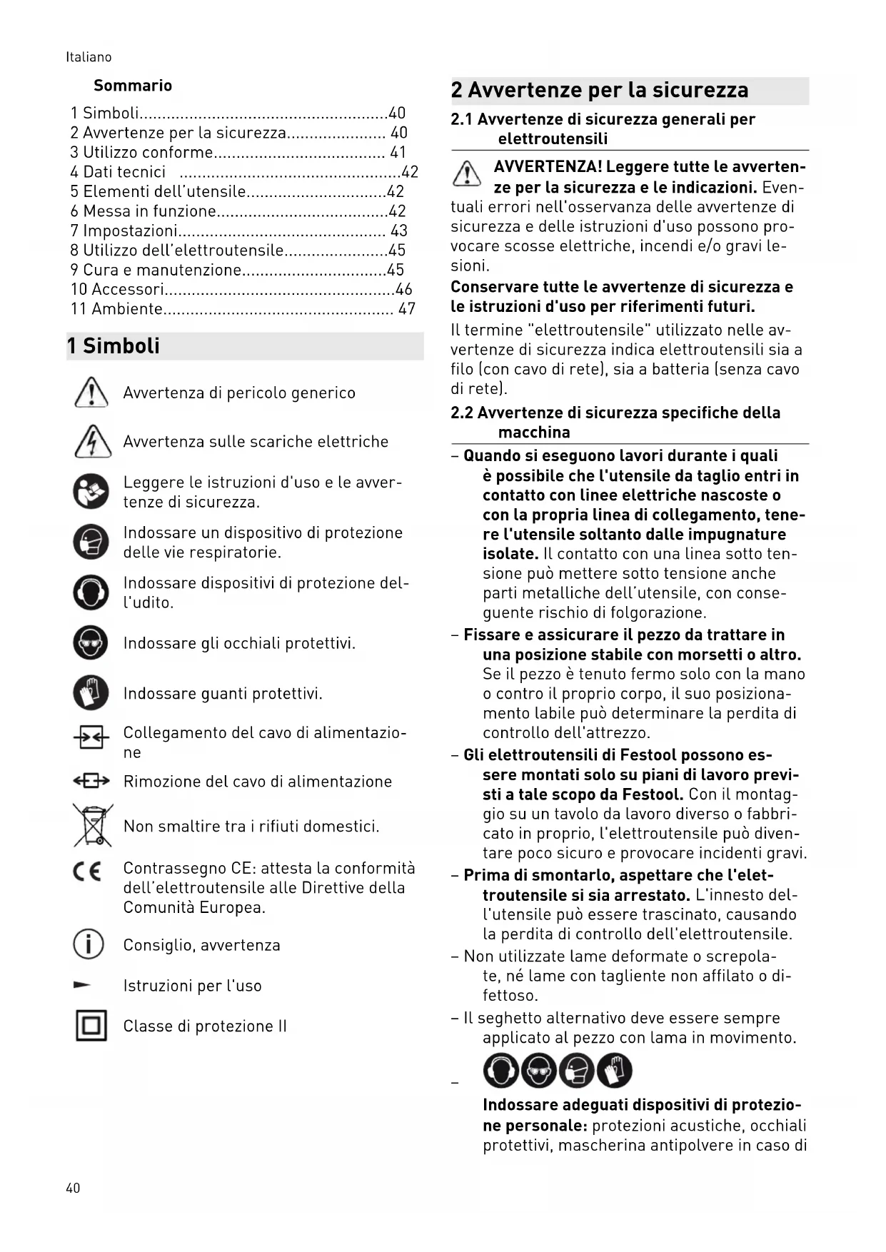 Scarica le istruzioni per il tuo Scie in formato PDF gratuitamente! Trova il tuo manuale PS 420 EBQPlus - FESTOOL e riprendi in mano il tuo dispositivo elettronico. In questa pagina sono pubblicati tutti i documenti necessari per l'utilizzo del tuo dispositivo. PS 420 EBQPlus del marchio FESTOOL.