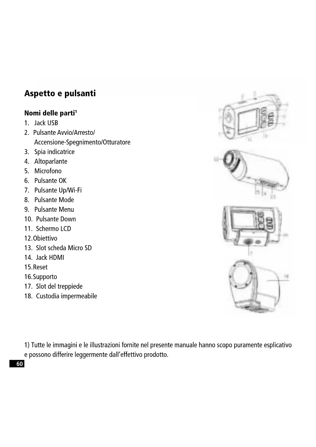 2) In questo paragrafo tutte le videocamere portatili utilizzano la custodia impermeabile e il