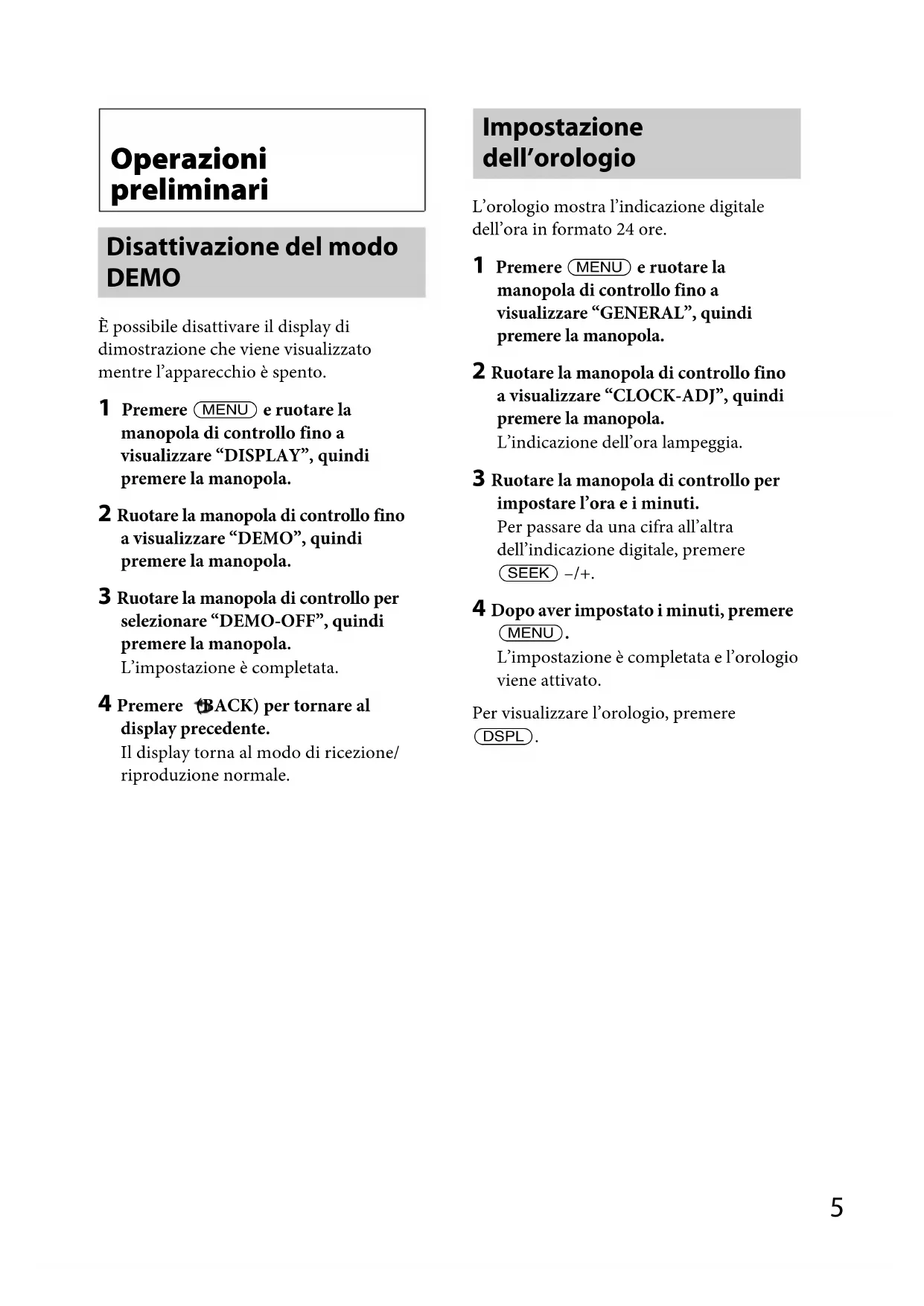 Per annullare la dimostrazione (DEMO), vedere pagina 5.