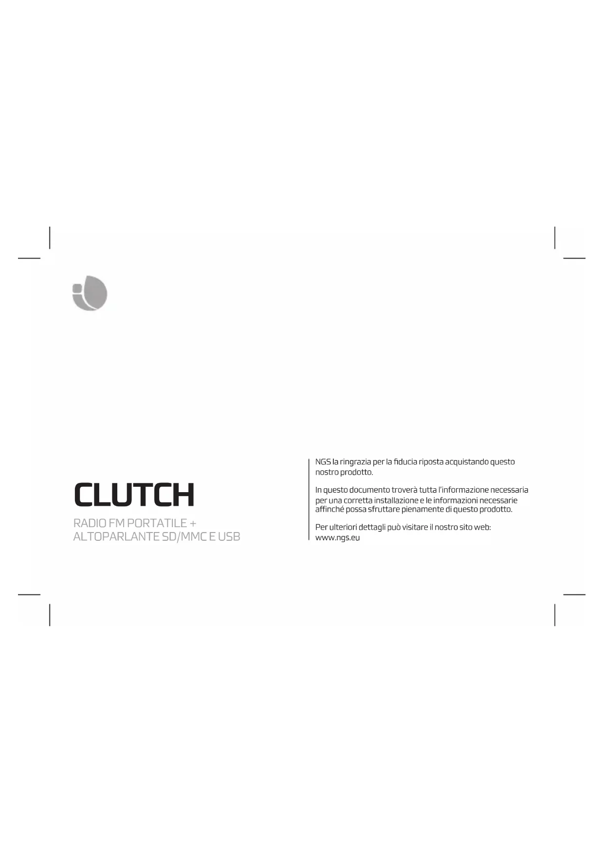 Scarica le istruzioni per il tuo Radio in formato PDF gratuitamente! Trova il tuo manuale Clutch - NGS e riprendi in mano il tuo dispositivo elettronico. In questa pagina sono pubblicati tutti i documenti necessari per l'utilizzo del tuo dispositivo. Clutch del marchio NGS.