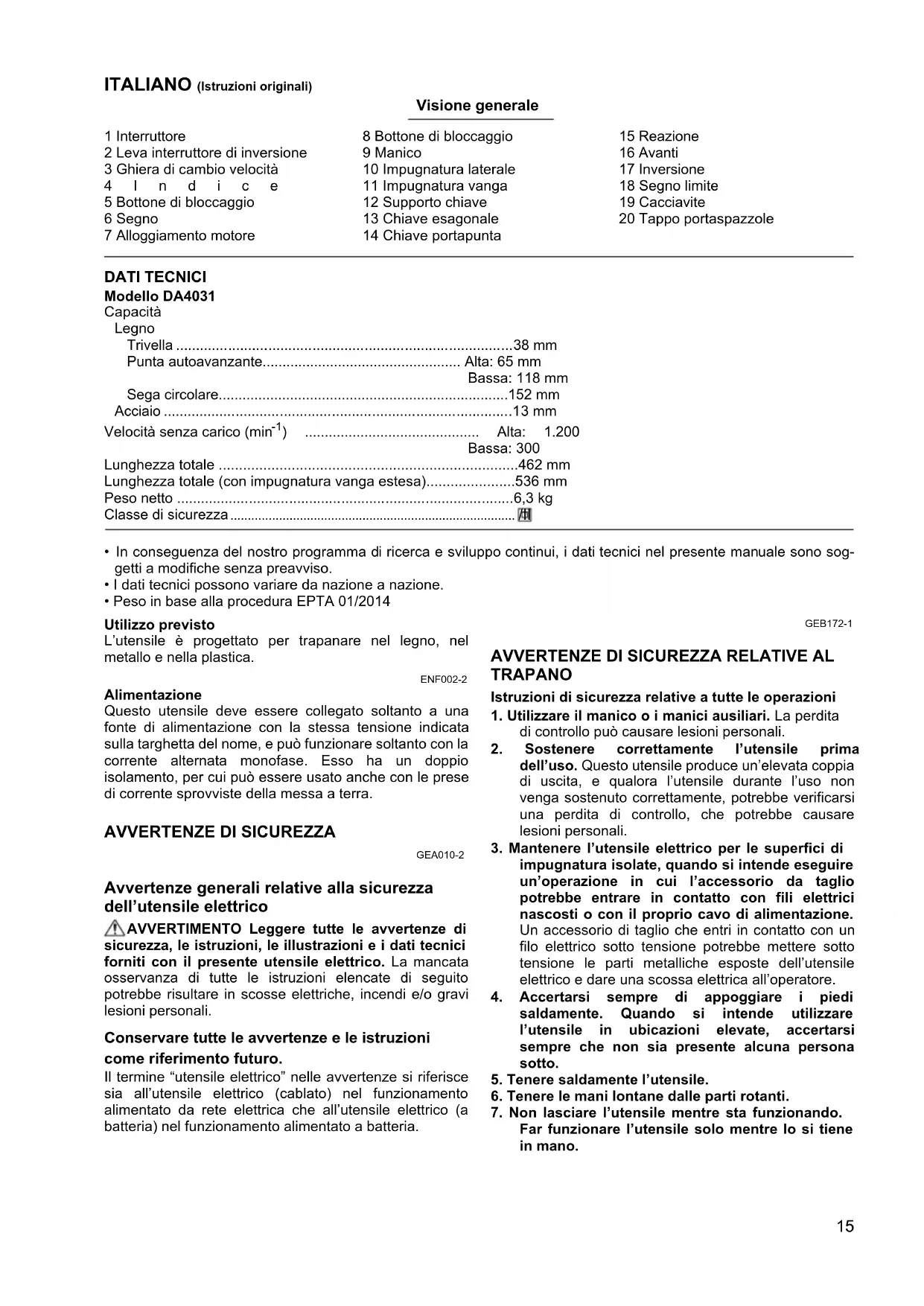 MANUALE UTENTE DA4031 MAKITA