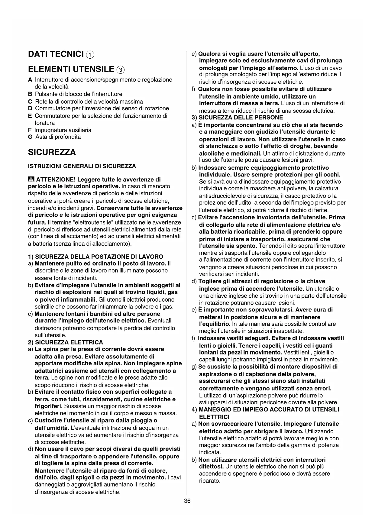 SICUREZZA ISTRUZIONI GENERALI DI SICUREZZA ATTENZIONE! Leggere tutte le avvertenze di