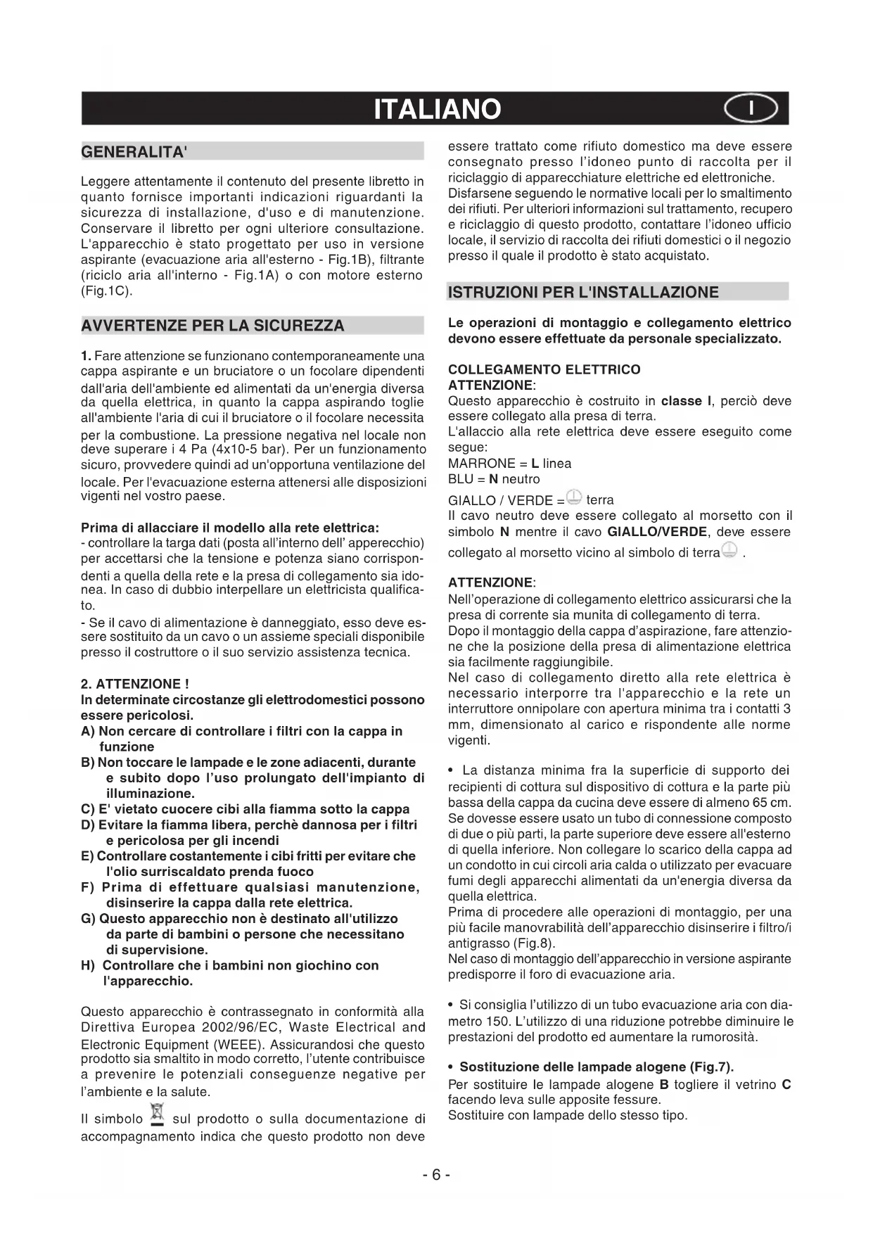 CAPPA ASPIRANTE - Istruzioni per l'uso