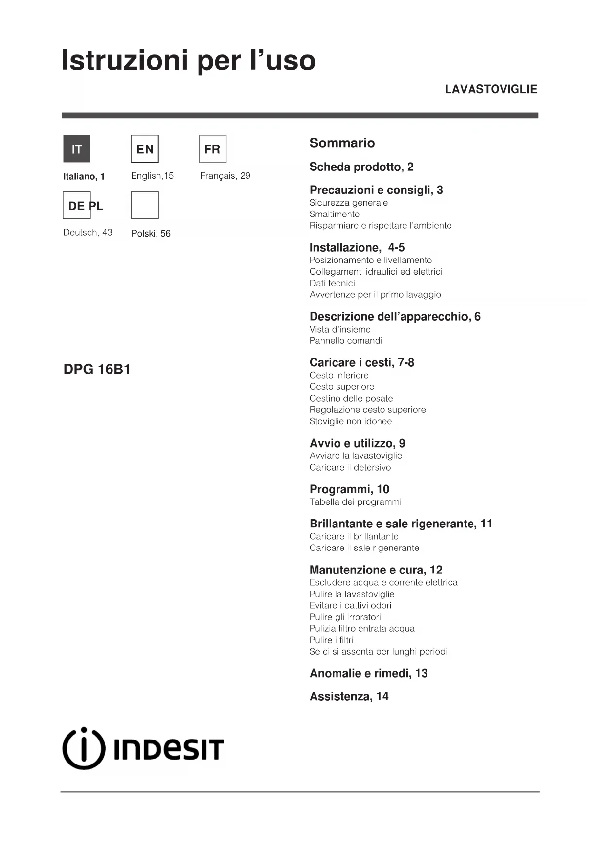 DPG 16B1 A K EU - Lavastoviglie INDESIT - Manuale utente e istruzioni gratuiti