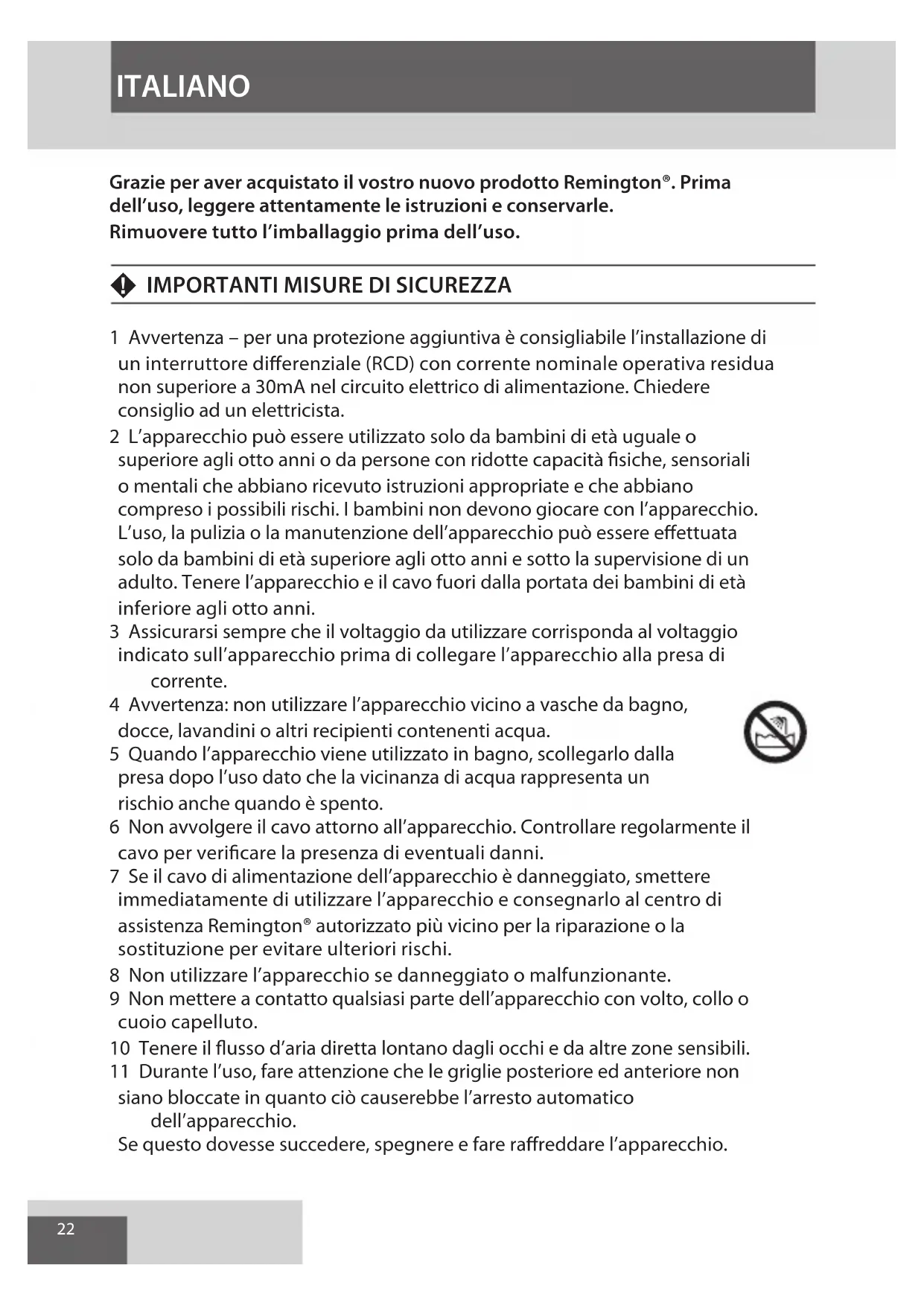 Grazie per aver acquistato il vostro nuovo prodotto Remington®. Prima