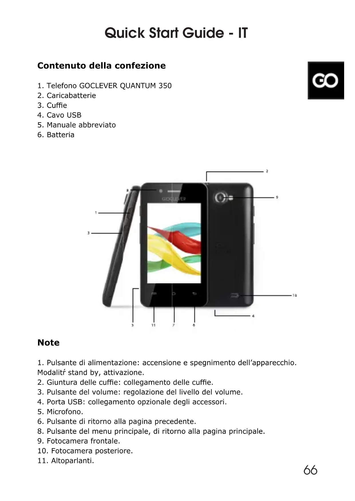 Quantum 350 - Smartphone GOCLEVER - Manuale utente e istruzioni gratuiti