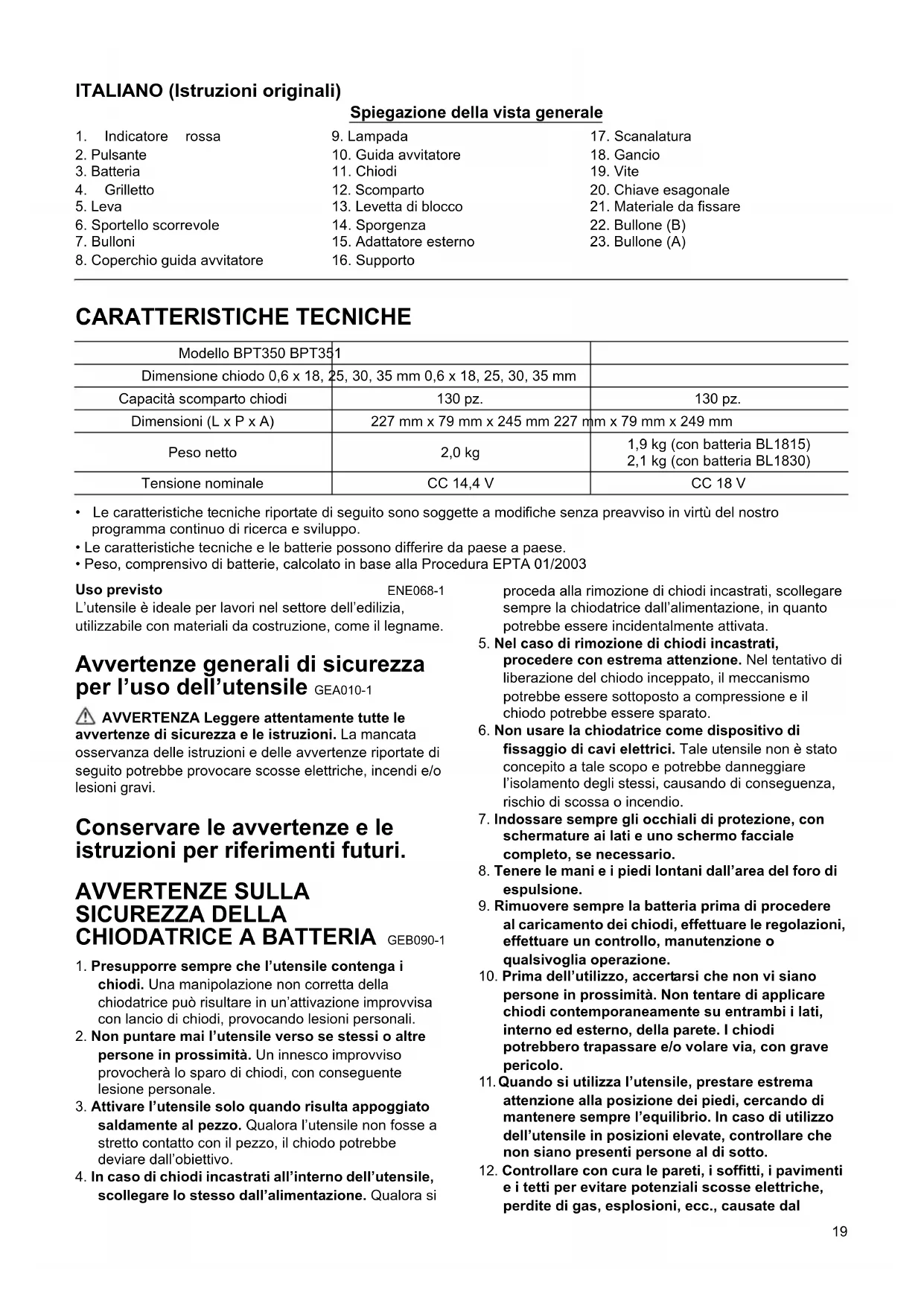 AVVERTENZE SULLA SICUREZZA DELLA CHIODATRICE A BATTERIA GEB090-1