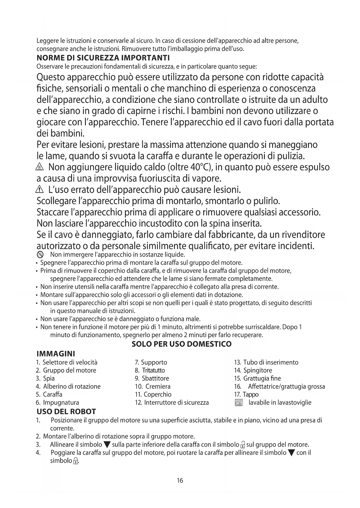 le lame, quando si svuota la caraffa e durante le operazioni di pulizia.