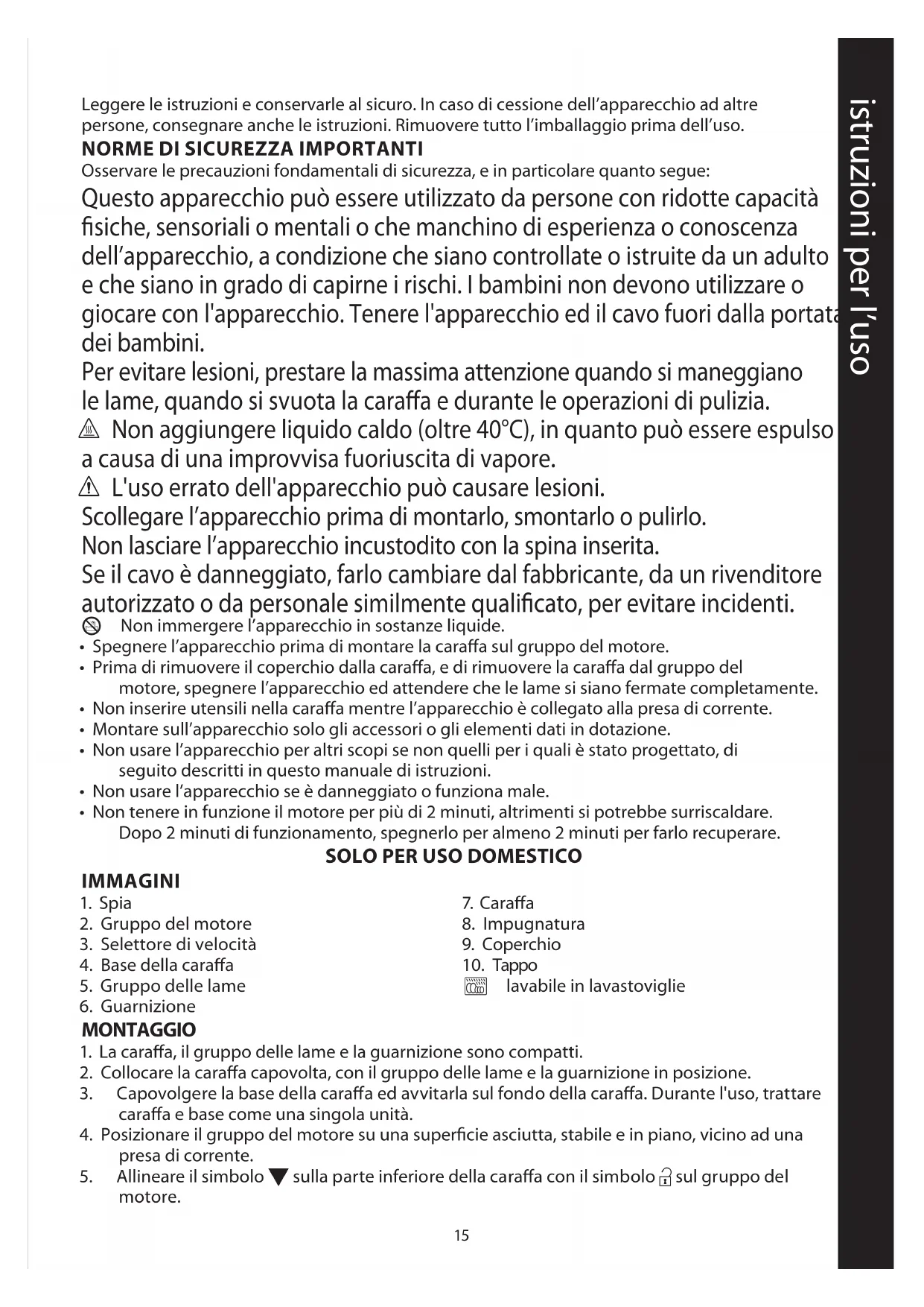 SOLO PER USO DOMESTICO IMMAGINI